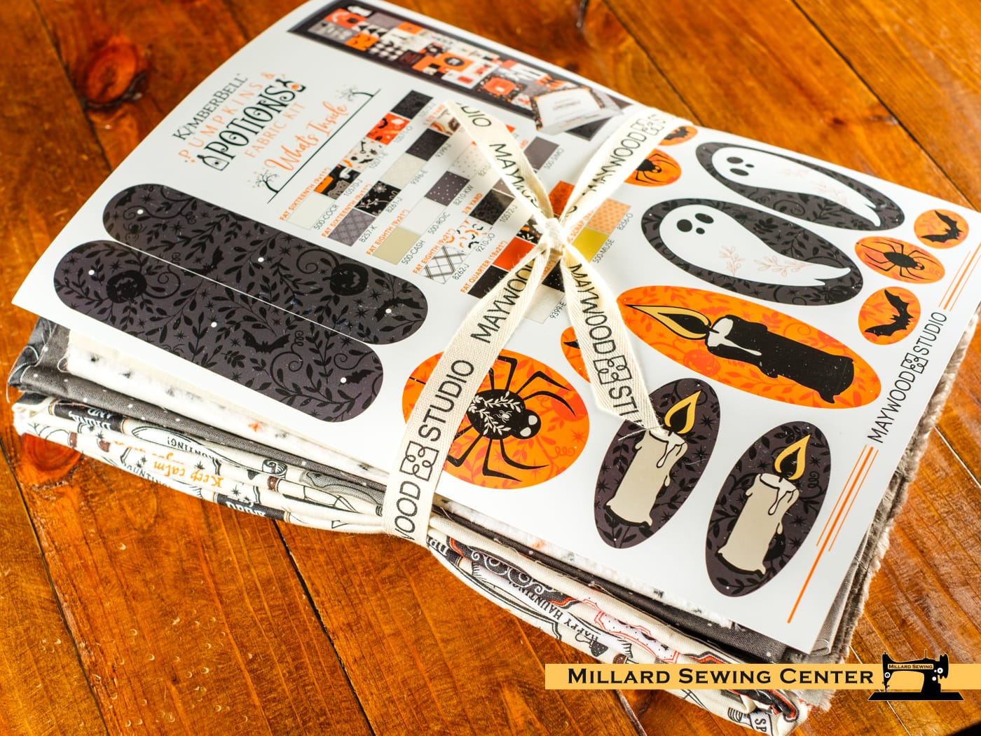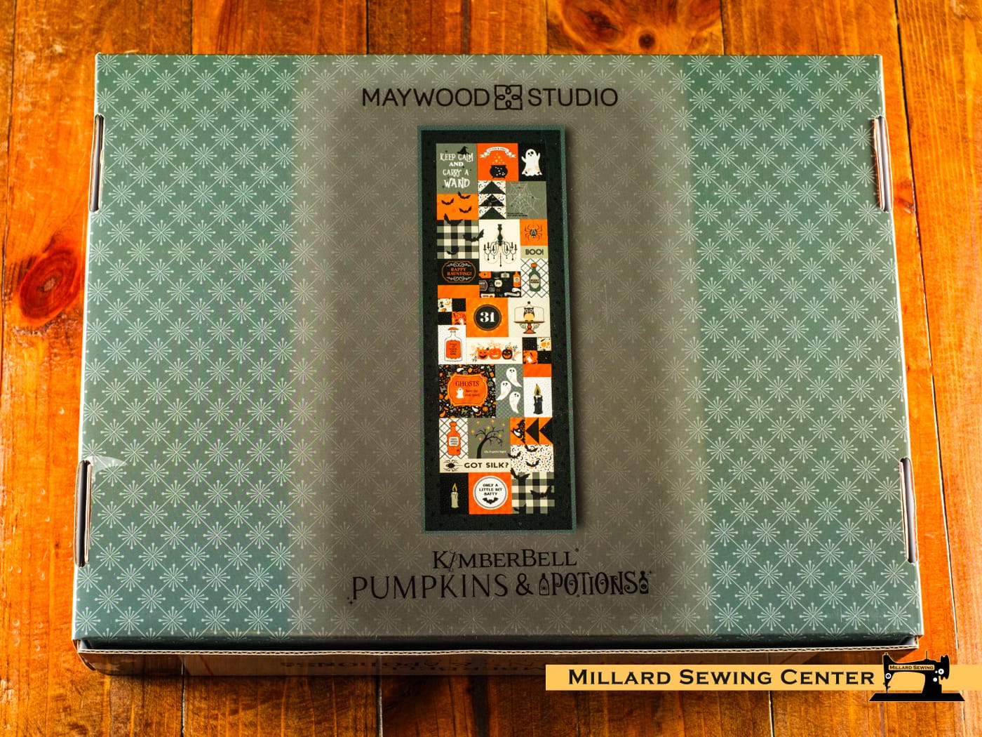 Finished Size: 20″ x 60″. Comes in a collectible box. Kit includes fabric for one Kimberbell Pumpkins & Potions ladder quilt top, backing and binding.