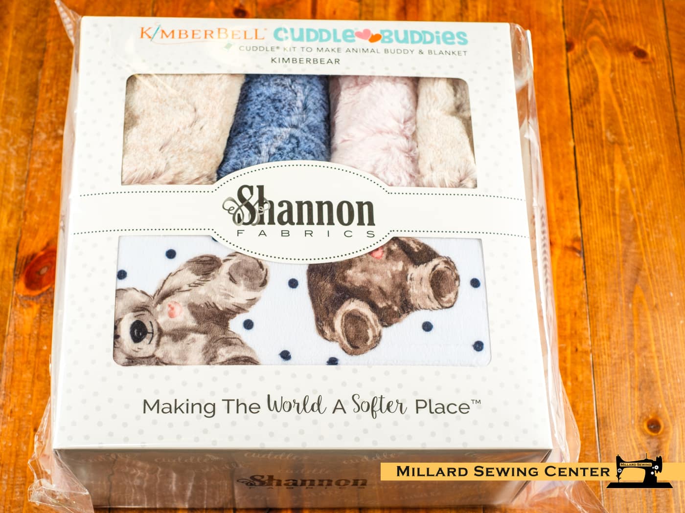 Kimberbear Cuddle Buddies Kit Remember the Kimberbear, the little bear stuffed animal that was designed to be made and donated to children in need? Shannon Fabrics has partnered with our friends at Kimberbell to create a kit that pairs our Cuddleยฎ fabric and Lullaby quilt design with their pattern to make sewing these fun projects easier than ever! This “Kimberbear” Cuddleยฎ Buddies Kit includes the Cuddleยฎ fabric (both pink and blue fabric) to make the blanket and stuffed animal, as well as the pattern for each. Machine appliquรฉ fabric and instructions are also included.