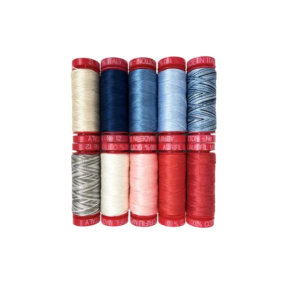 Indeed, Grand Haven signifies Laurie Simpson’s illustrious career culmination. Weโre delighted that she chose to curate one final Aurifil set to celebrate this exceptional milestone. Ten small spools of 100% cotton 12wt inย Grand Havenย hues are the perfect farewell.