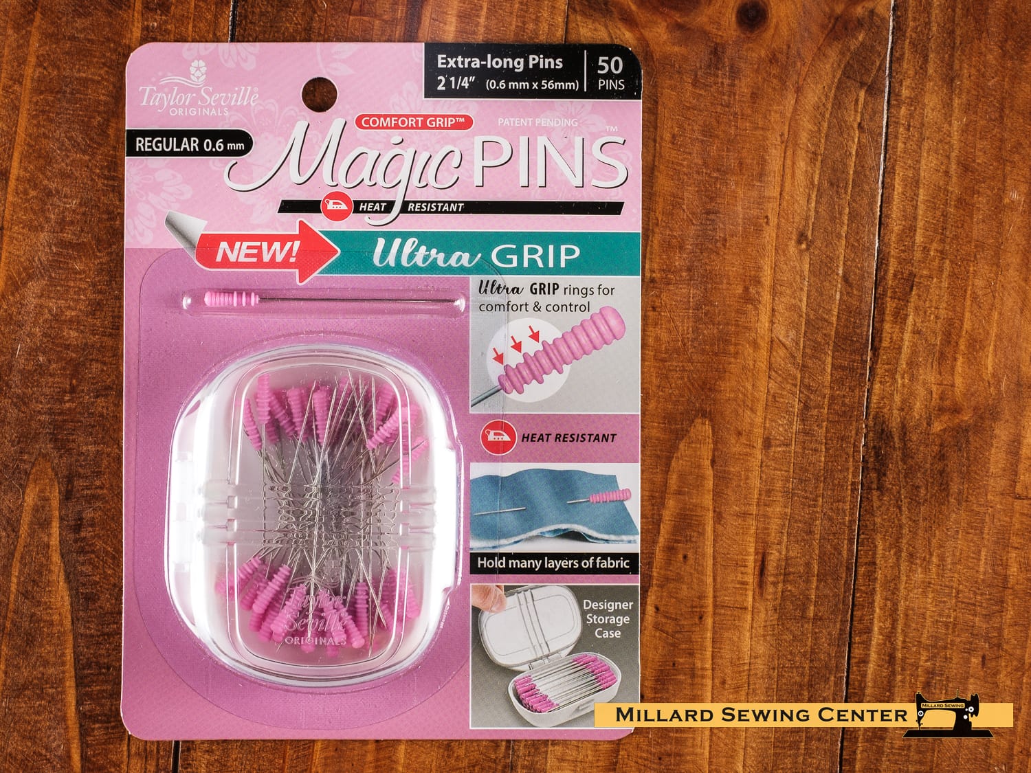 Ultra Grip heat resistant regular pins. Holds many layers of fabric. Designer storage case.
