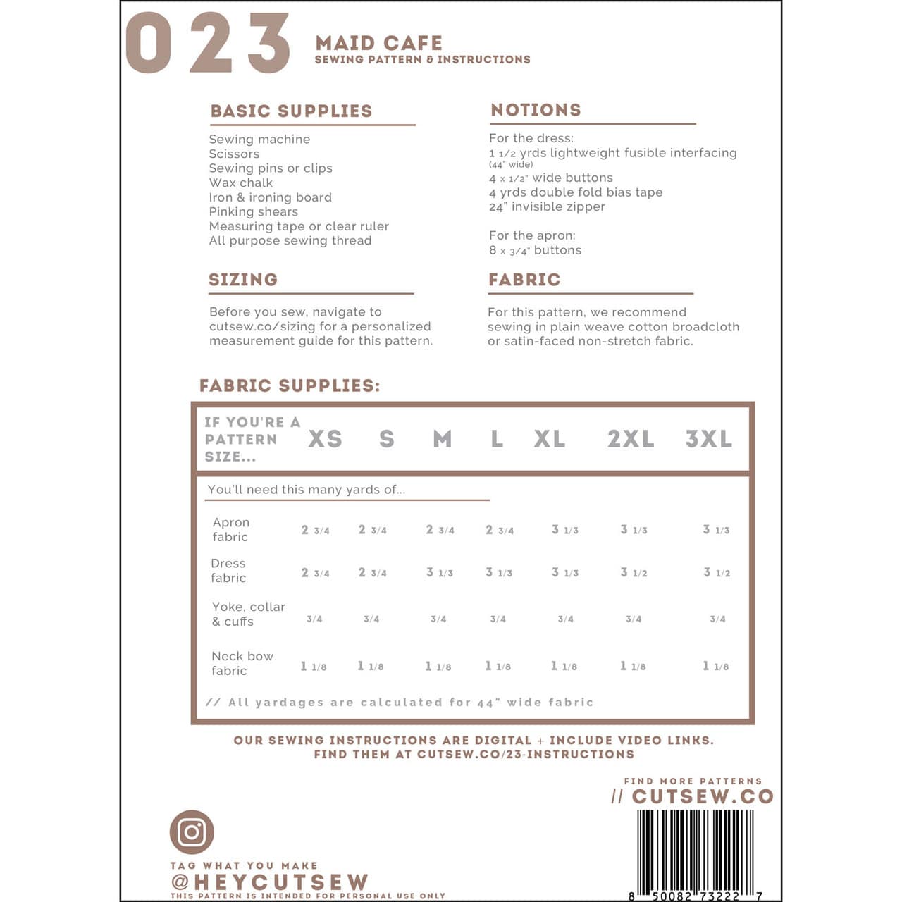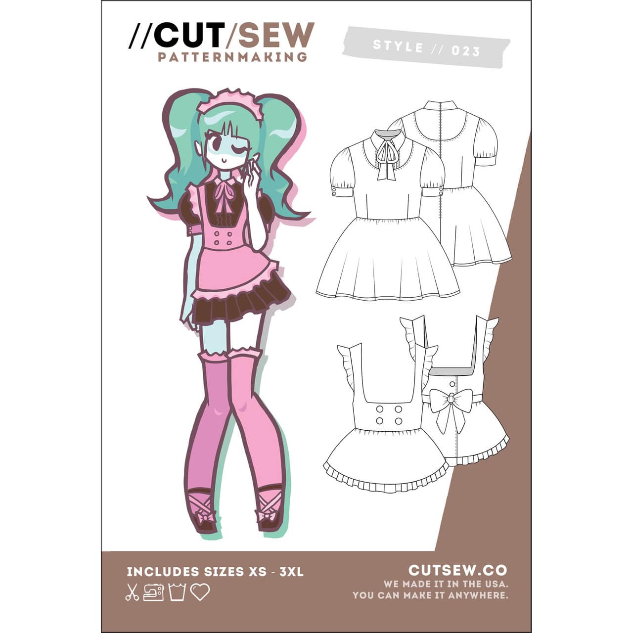 Itadakimasu! Perfect for cosplaying idol anime or a maid version of your problematic fav, this pattern includes a collared mini-dress with a full circle skirt and frilly apron with a button-back closure. Deck it out with customizable ribbons, buttons, and bows to be super extra, or make it as-is for a perfect maid cafe look.