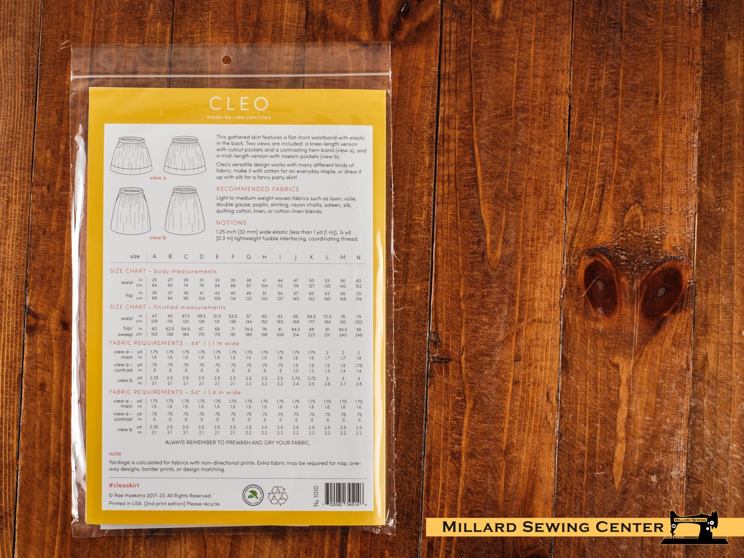 This gathered skirt features a flat-front waistband with elastic in the back for a flattering and comfortable fit. Two views are included: a knee-length version with cutout pockets and contrasting hem band, and a midi-length version with inseam pockets. Cleo’s versatile design works with many different kinds of fabrics; make it with cotton for an everyday staple, or dress it up with silk for a fancy party skirt!