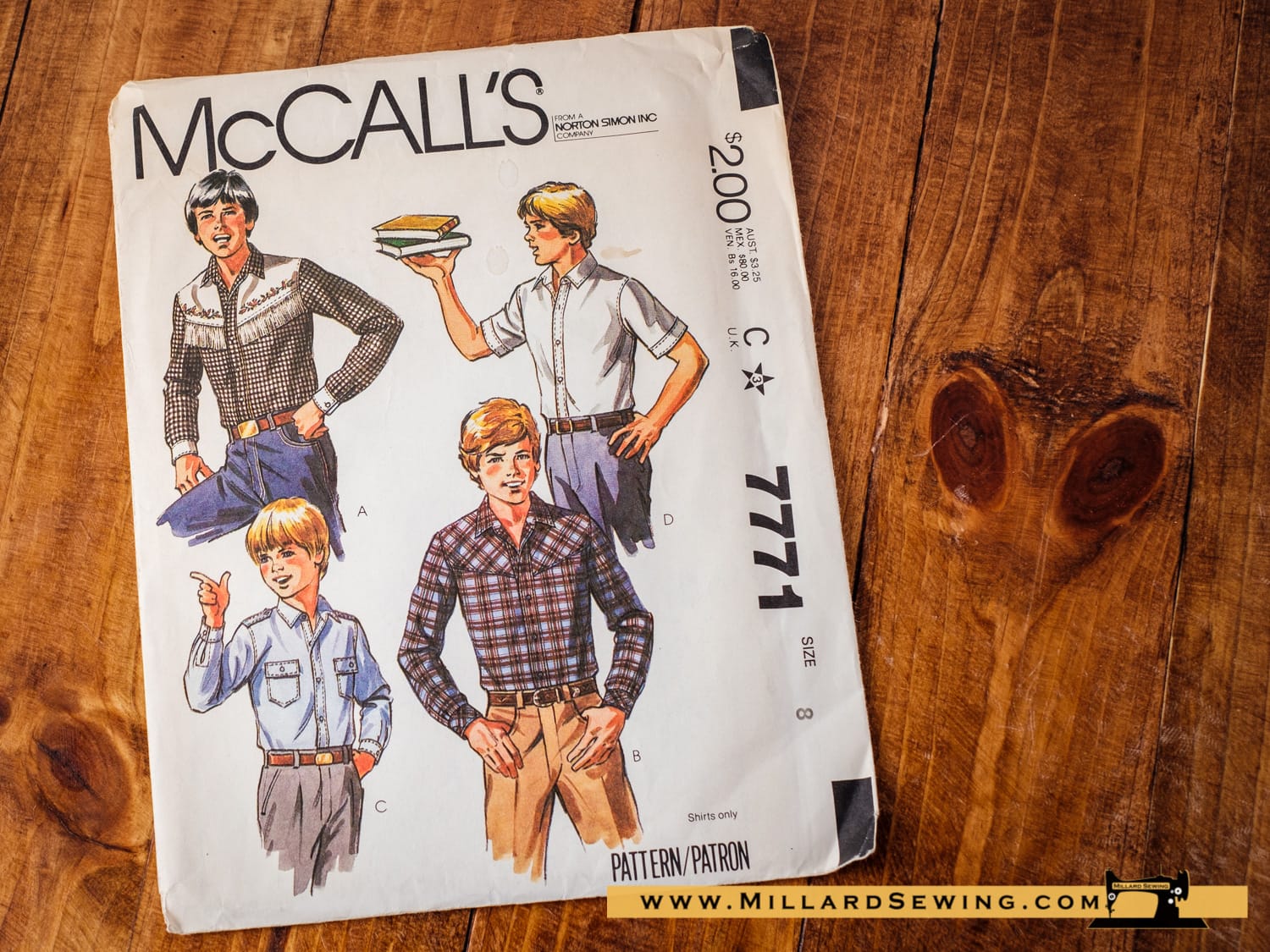 Shirts have collar with band (in one), buttoned front bands, shirttail hemline, and top-stitch trim.