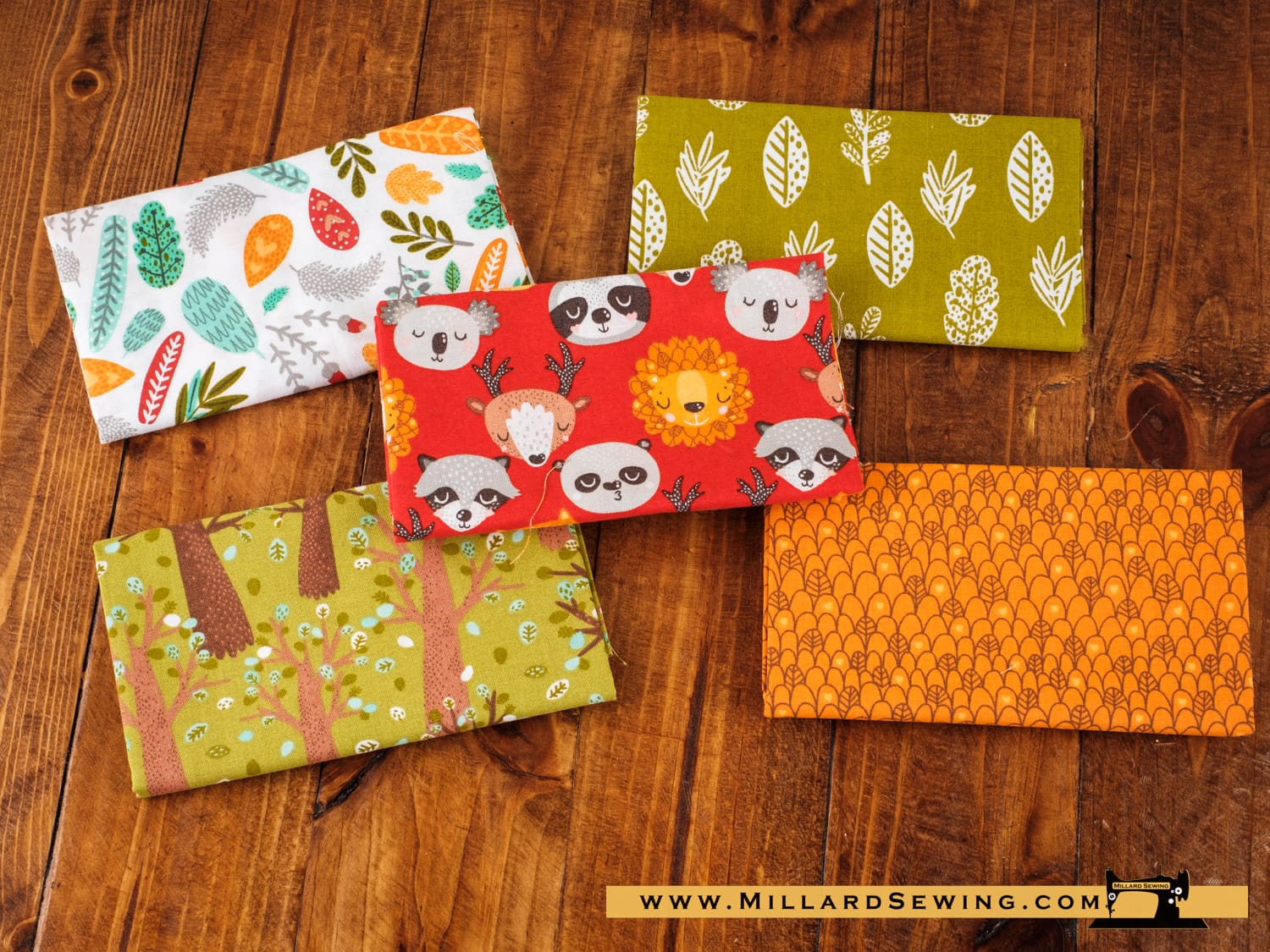 This package contains five 18×21 inch 100% cotton fabric pieces in assorted designs. Machine wash, machine dry, do not bleach, iron.