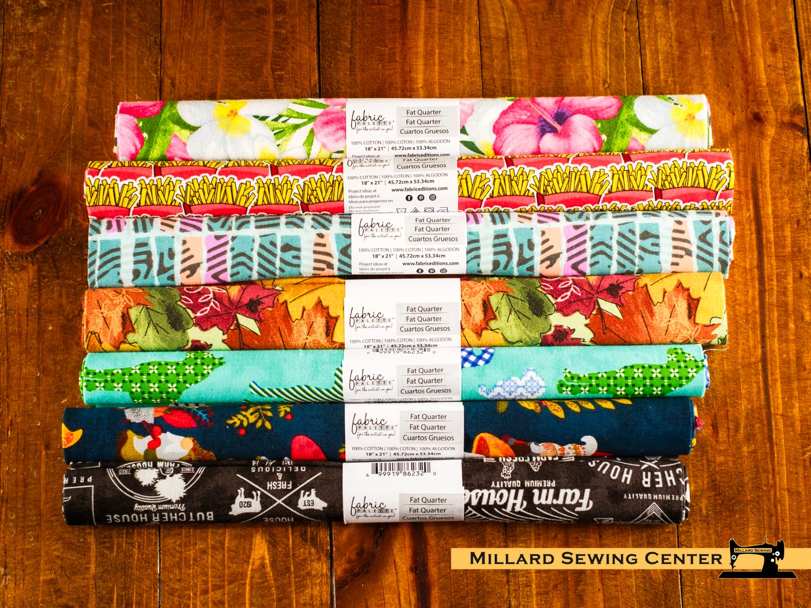 Fabric Editions-Fat Quarters. Break free from the traditional fabric picking process! These fat quarters are part of an assortment and when you order one you never know just what you might get. While the colors and designs of the fabrics shown in the picture are in indication of what you will receive, they are a representation only. No guarantees can be made nor can a specific fabric be chosen. Go ahead and use this as an excuse to be adventurous…order several and let the fabrics that arrive inspire you. You might just be amazed at how a random Fat Quarter can be transformed into something spectacular.
