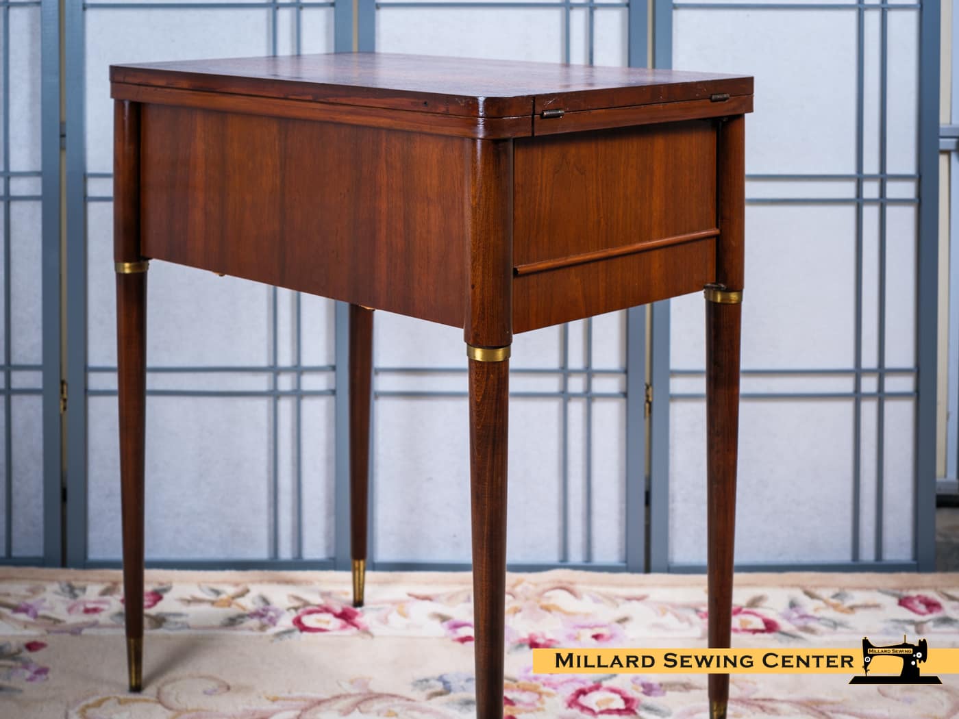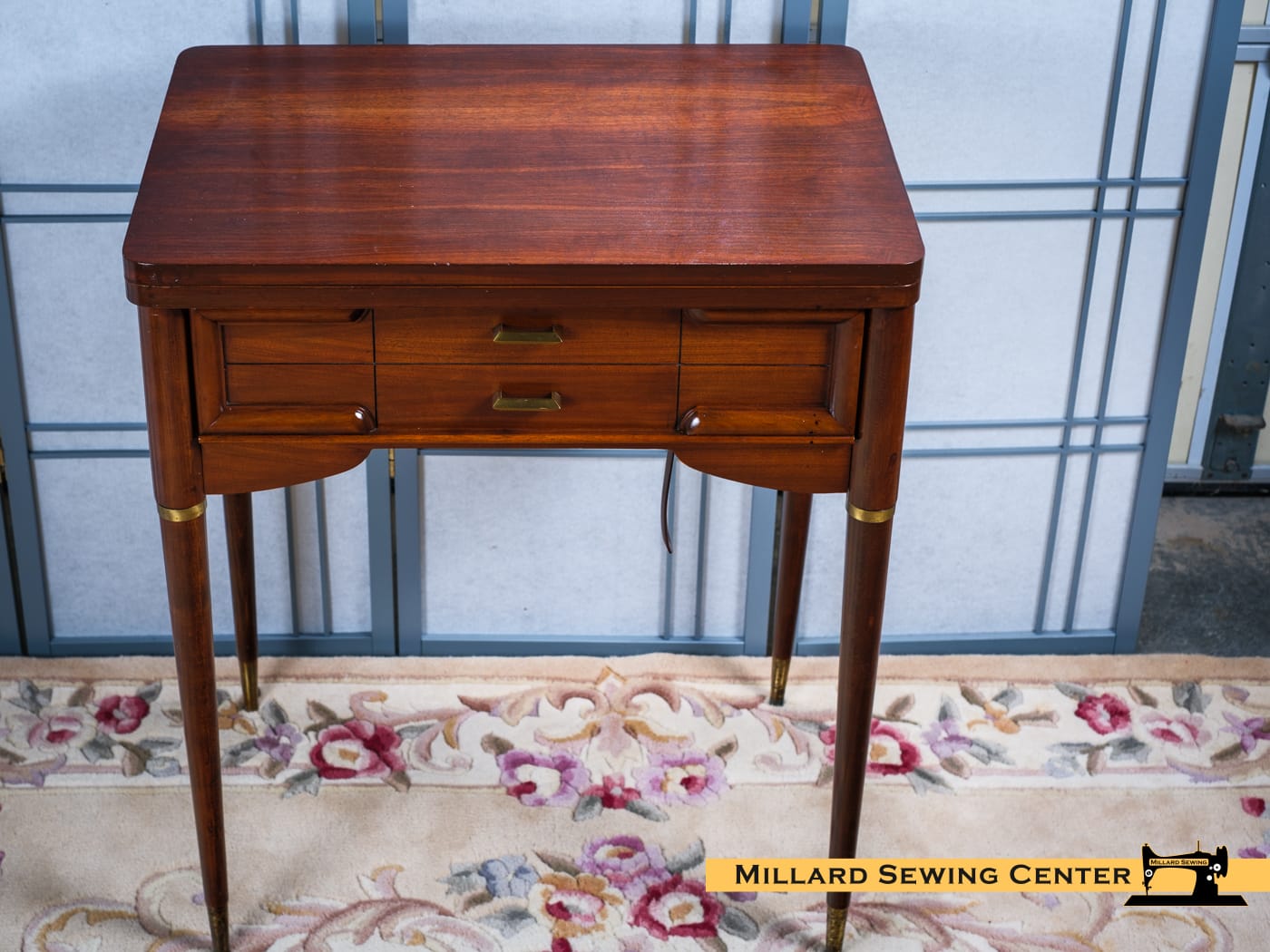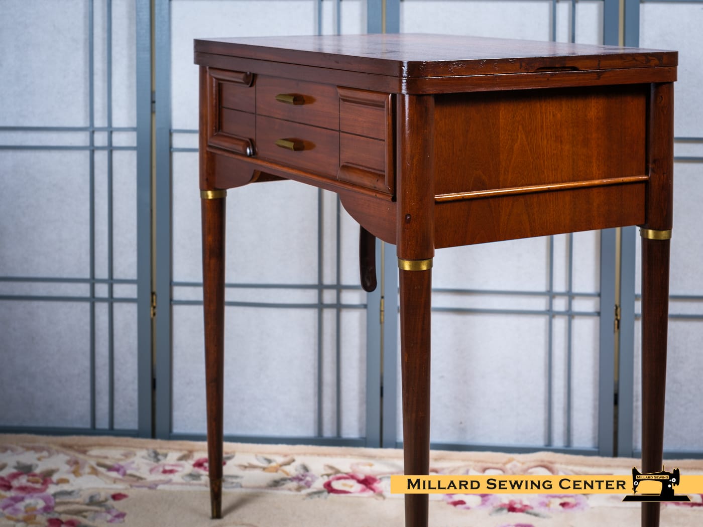 You are currently looking at a Singer Sewing machine cabinet for a full size machine with a mid-century modern look, and appropriately named The Cosmopolitan. This one is completely refinished and looks new!