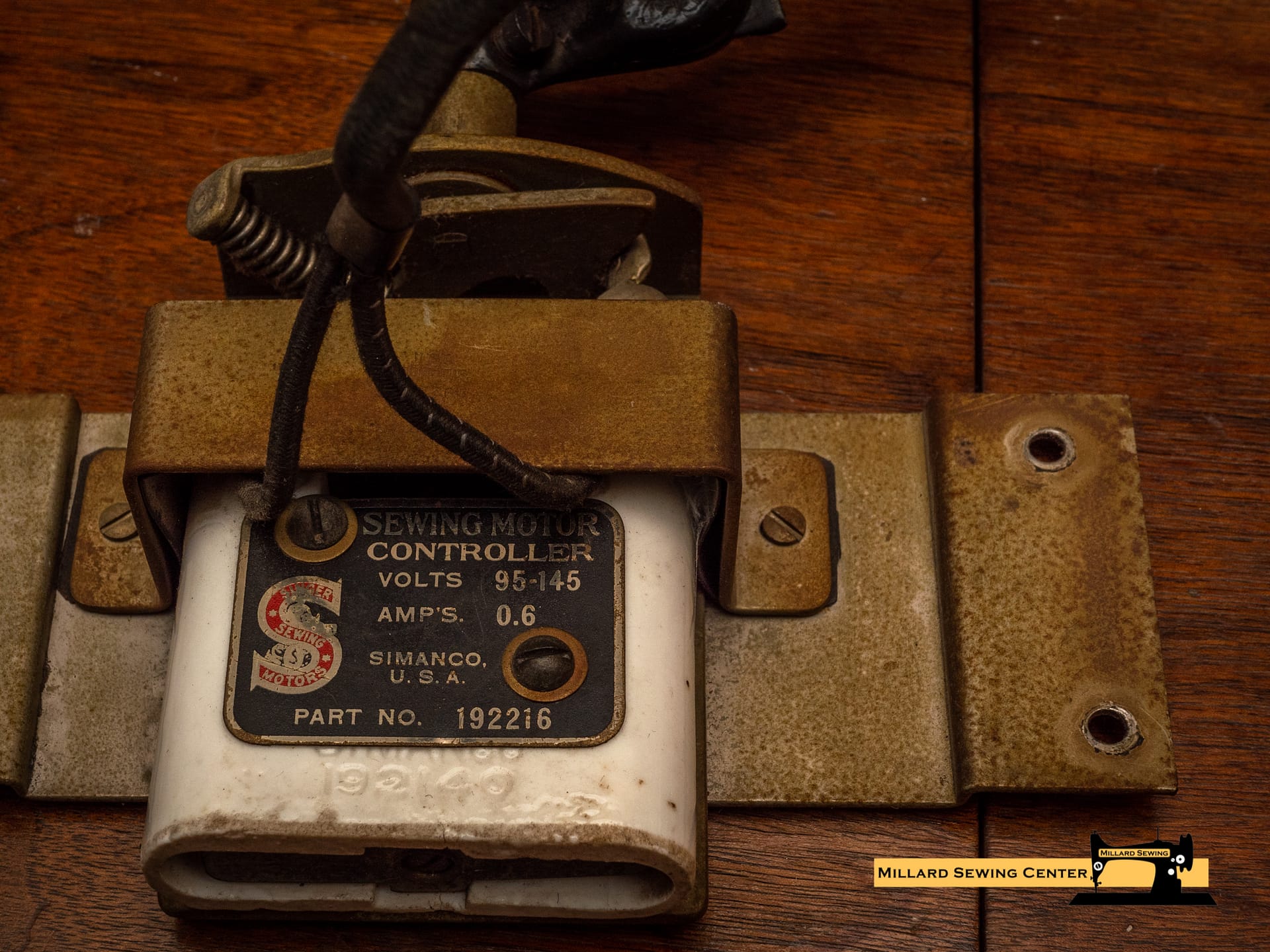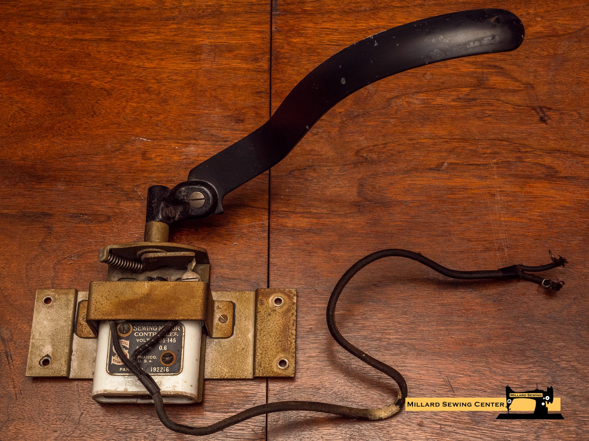 Used Singer Motor Controller with knee control bracket.ย Made for installation into a cabinet.