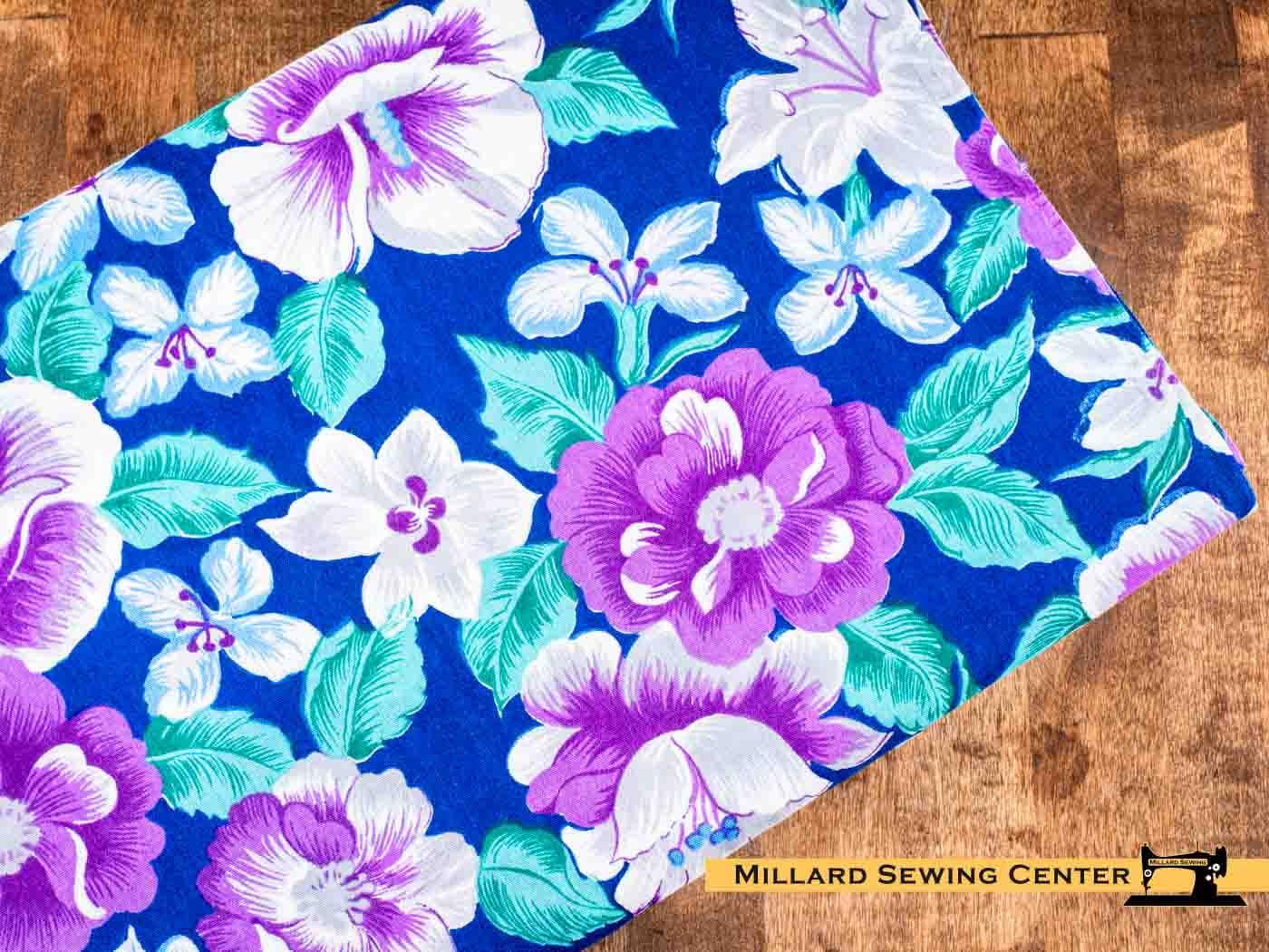 Remnant (Cotton) Blue, Purple & White with Floral Print Fabric (2 1/2 Yards)