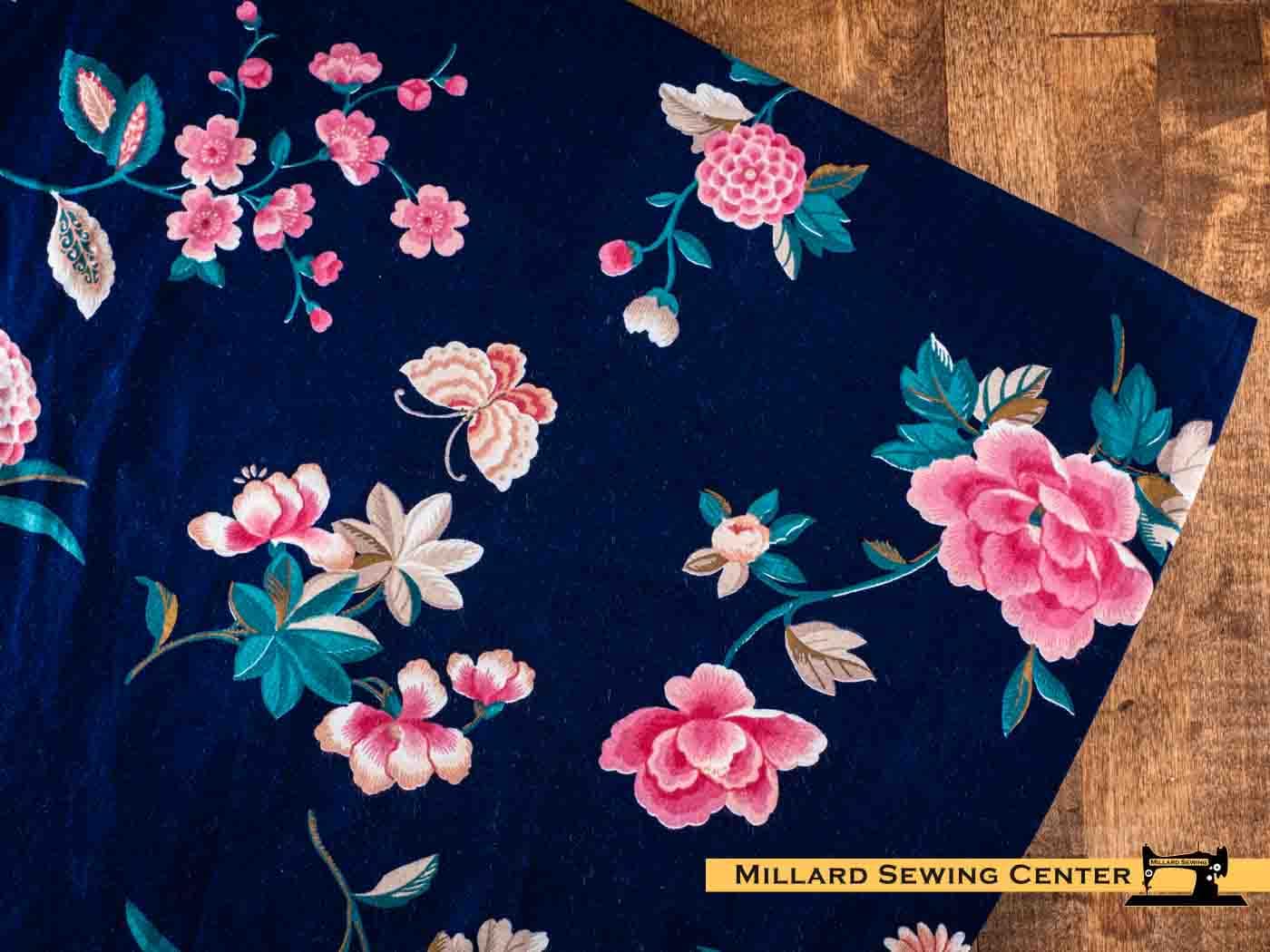 Remnant (Cotton) Dark Blue & Pink with Floral Print Fabric (3 Yards)
