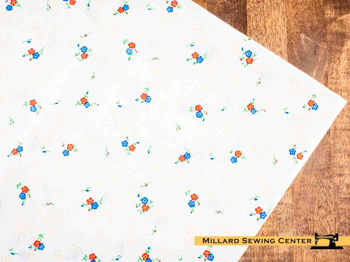 Remnant (Cotton) Red, White & Blue with Floral Print Fabric (27″)