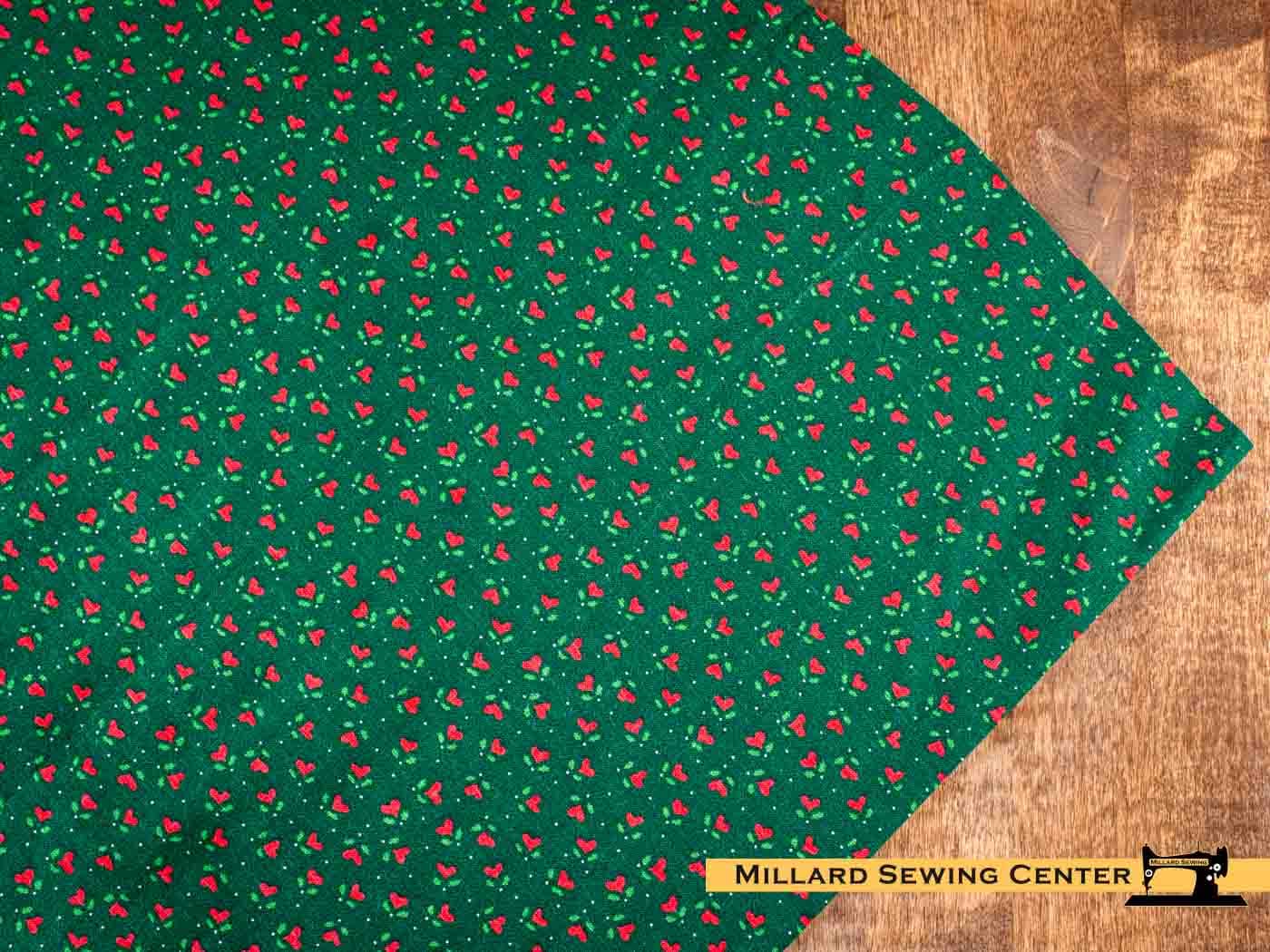 Remnant (Cotton) Green & Red with Hearts & Flowers Print Fabric (24″)