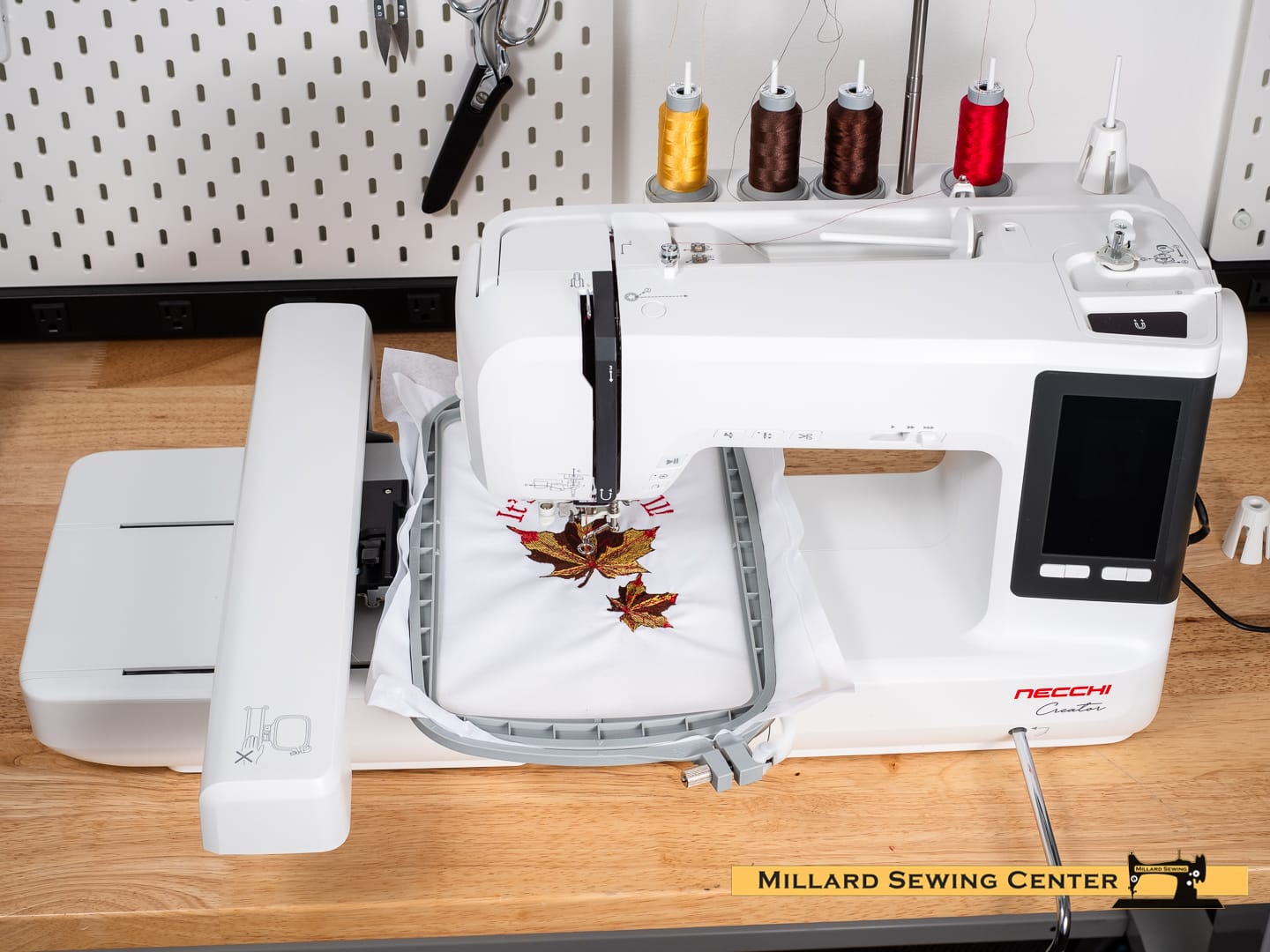 Get creative with the Necchi Creator C1200! This powerhouse machine boasts 1270 built-in embroidery patterns and a max embroidery area of 6.3โณ x 10.2โณ. With a top speed of 850 stitches per minute and automatic hoop detection, get your projects done faster and more accurately. Plus, stay connected with WiFi and enjoy the convenience of a 5โณ color LCD touch screen. Includes 3 hoop sizes.
