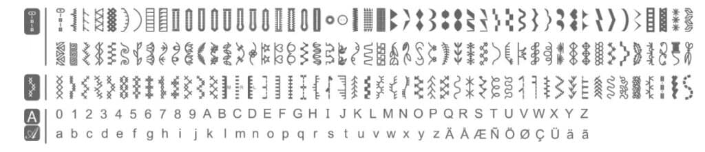 - 746 Built-In Stitches Including 4 Alphabet Fonts