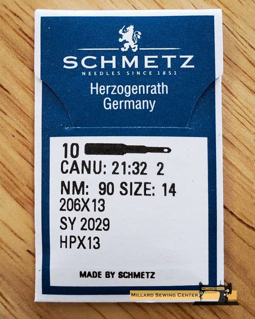 10 Pack of Schmetz 206×13 Size 14 for use in the Singer Swing Needle Machine. Models 206, 306, 319, and 320.