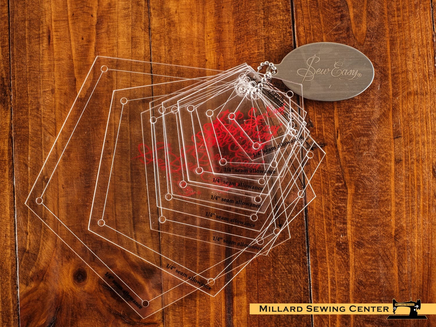 Includes marking points Finished measurements are from point to point. Laser-cut technology for smooth and accurate cutting. Made from tough, durable acrylic. Comes with zip lock pouch for storage and key chain that holds 8 piece template set. Set is by Sew Easy.