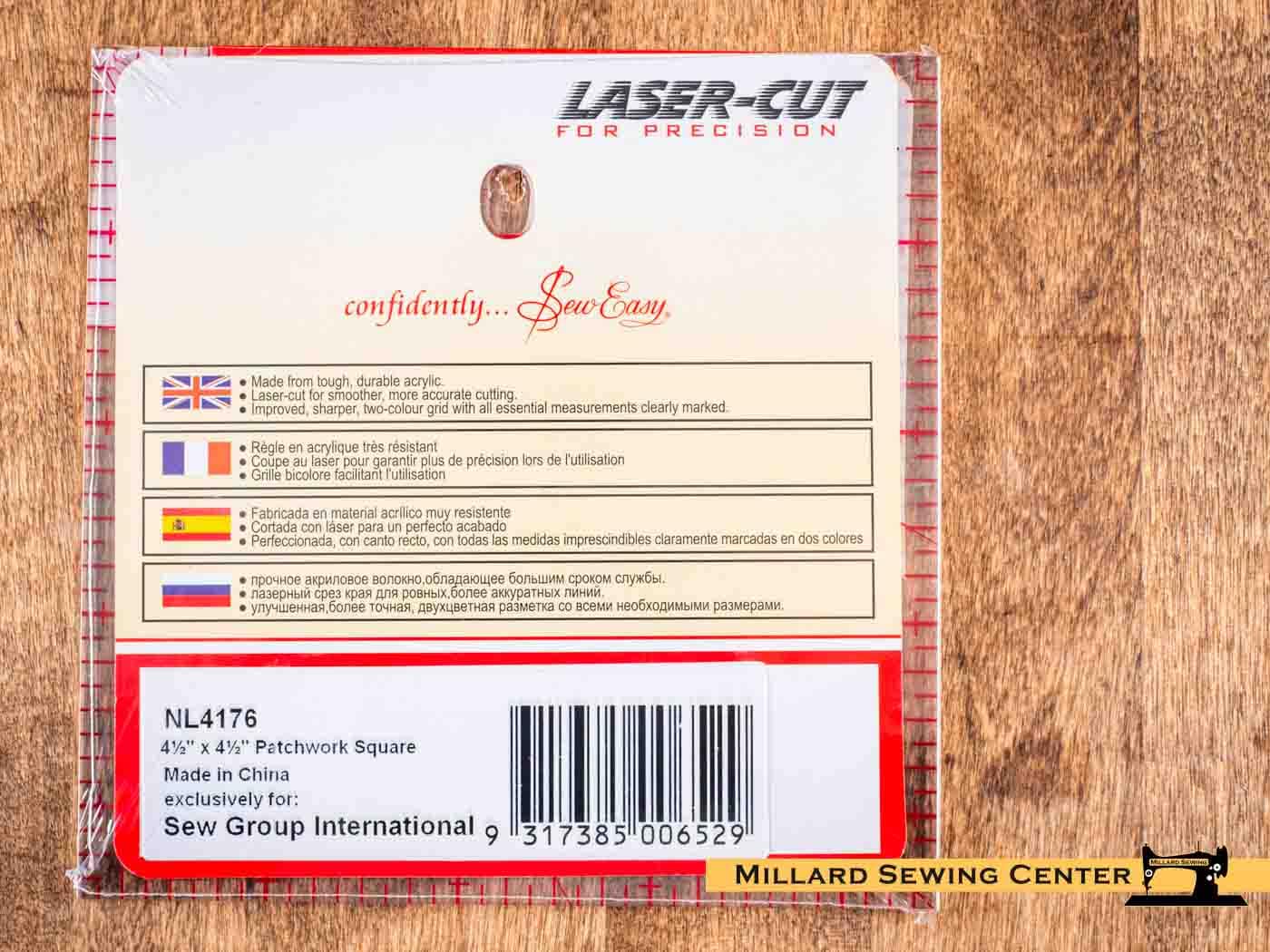 Patchwork Square Ruler 4.5″ x 4.5″ is a small square for marking out and rotary cutting blocks, particularly useful for miniature quilts and small patchwork projects.