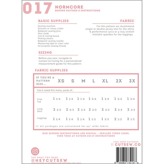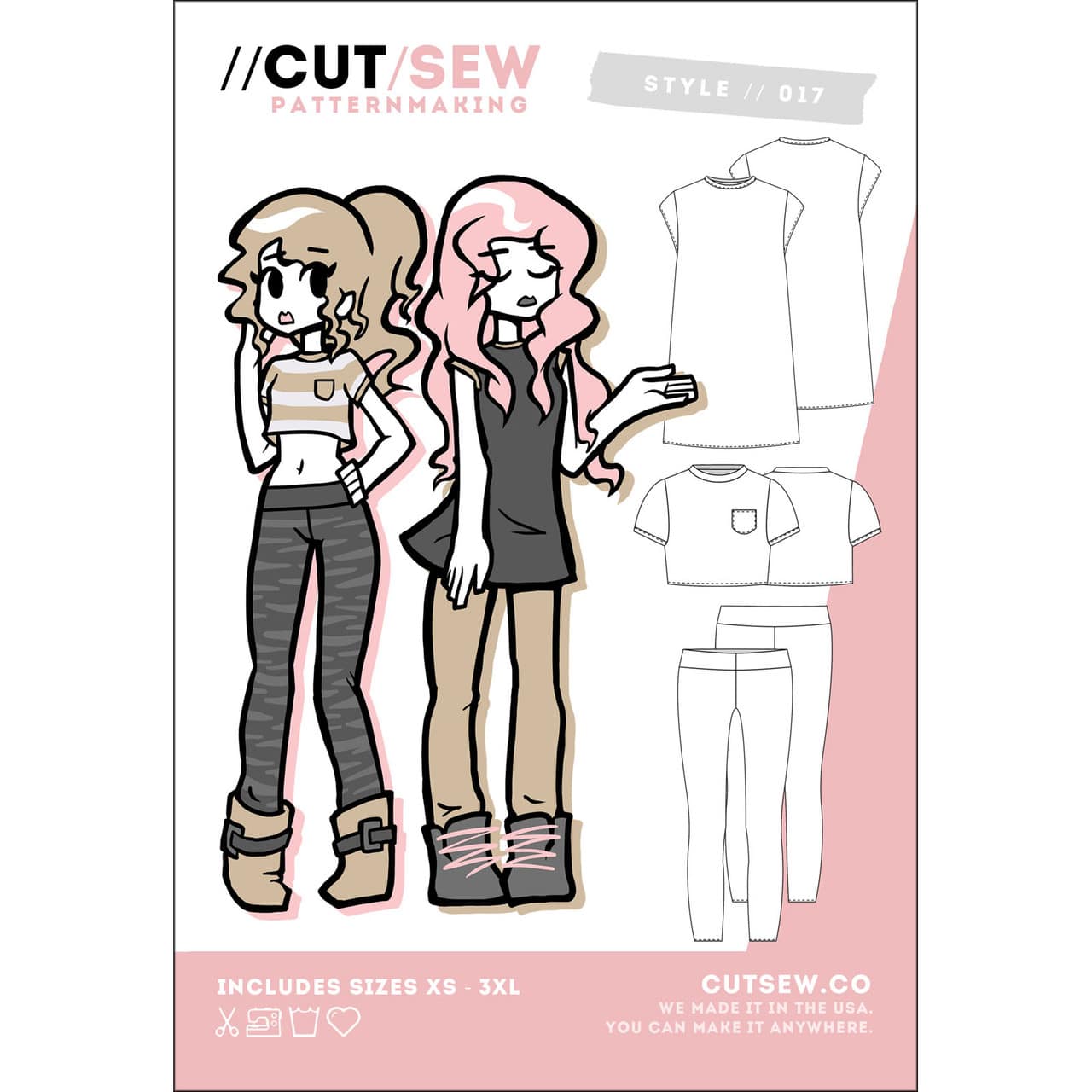 The perfect way to start sewing knits! This extra beginner-friendly pattern features basic leggings with a fold over waistband, a t-shirt style crop top, and an oversized tee for all your lazy day fashion needs. Sew it with an overlocker or with a regular home sewing machine – instructions are included for both options.