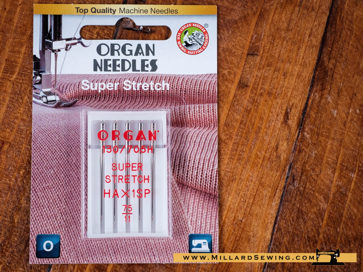 Super Stretch Ball point needles have a special eye for highly elastic materials. The ball point alleviates making holes and the scarf avoids skipped stitches.