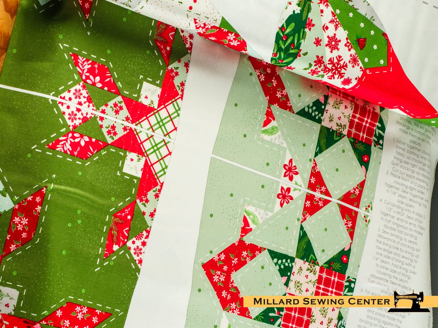 Mistletoe & Holly by Beverly McCullough for Riley Blake Designs is great for quilting, apparel and home decor. This panel features pieces and instructions to make stockings. Panel size is 35 1/2″ x 43″.