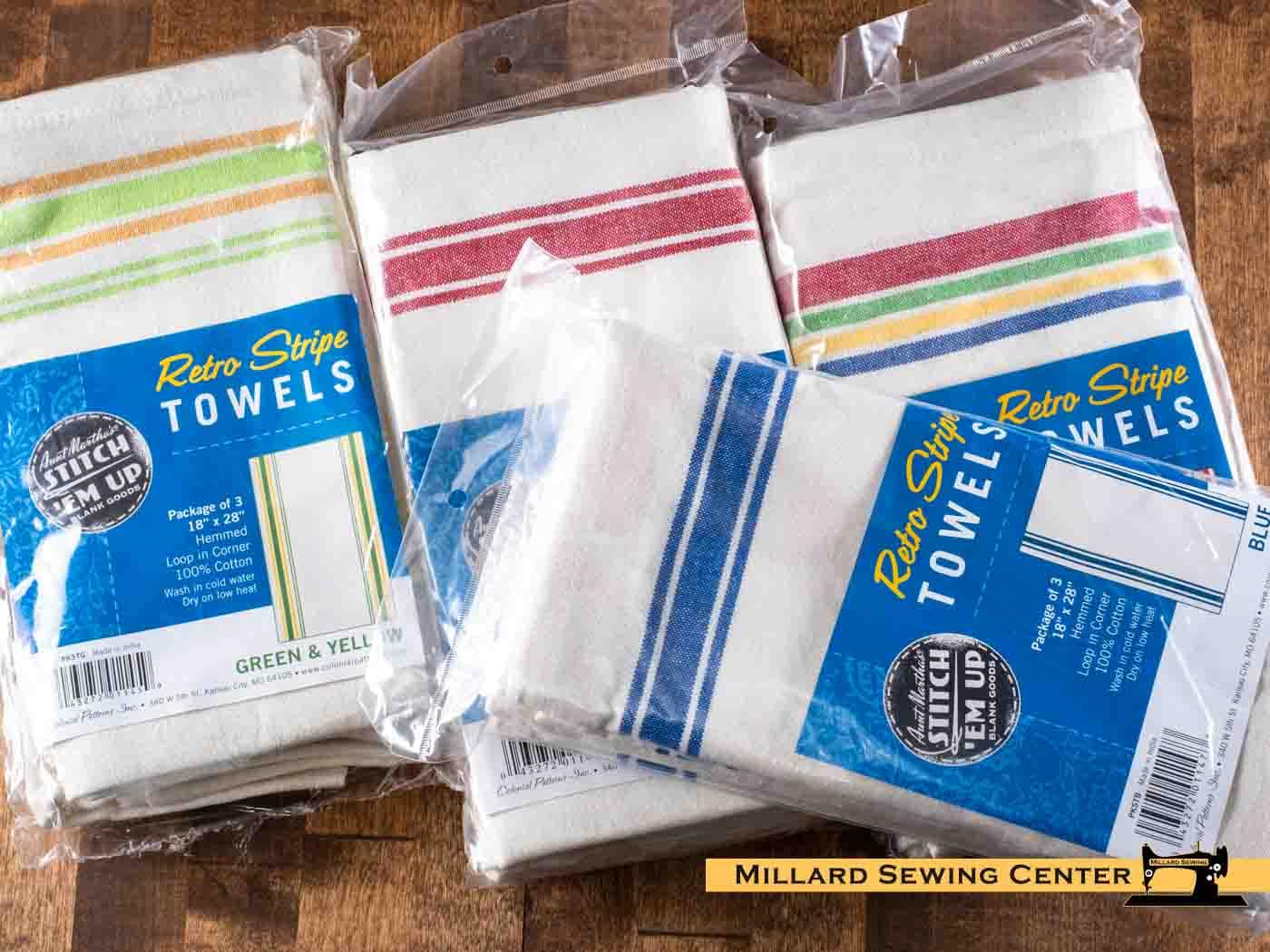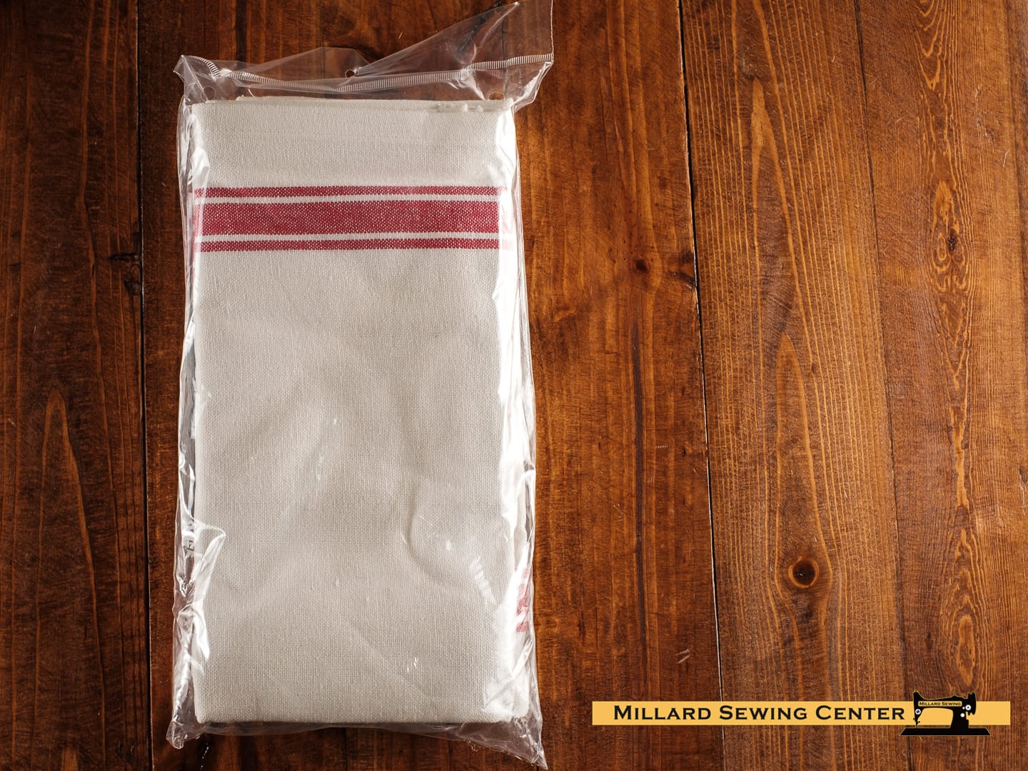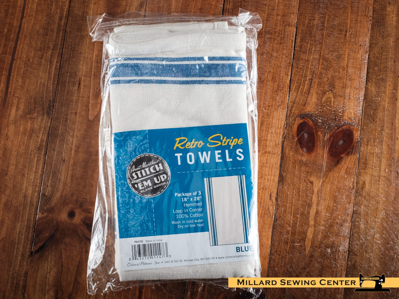Made from a 100% plain-woven cotton with a 4-sided hem and a hanger loop sewn in the corner.ย Stripes run along the long side of towel.ย Towel measures 18×28 inches. Wash in cold water; dry on low heat; some shrinkage will occur.