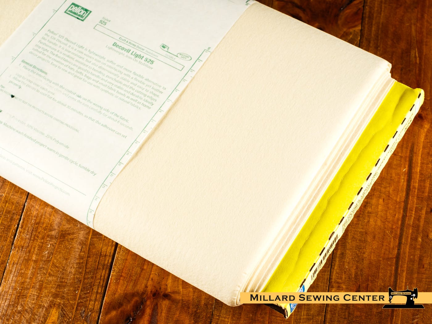 Pellon(R) 525 Decovil Light is a lightweight, softer and more flexible alternative to the 526 Decovil. It is a non-woven iron-on interfacing with a flexible yet leather like handle. It is tear-resistant, but also dimensionally stable and easy to shape. Furthermore it is resilient, resistant to bending, punchable and the cutting edges suited for the creation of hats, belts, bags and small fabric bowls as well as home decor projects. Easy to sew and great for use with synthetic or natural fabrics. Fiber Content: 45% Polyester, 30% Viscose, 25% Polyamide. Care Instructions: Machine wash finished project warm in gentle cycle, tumble dry low or dry clean.