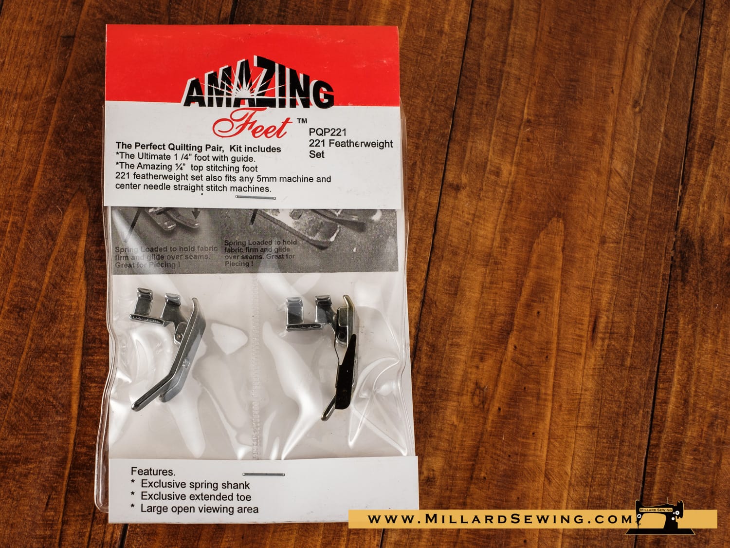 Two amazing feet. The Perfect quilting pair. Exclusives: Spring shank, extended toe, and large open viewing area.