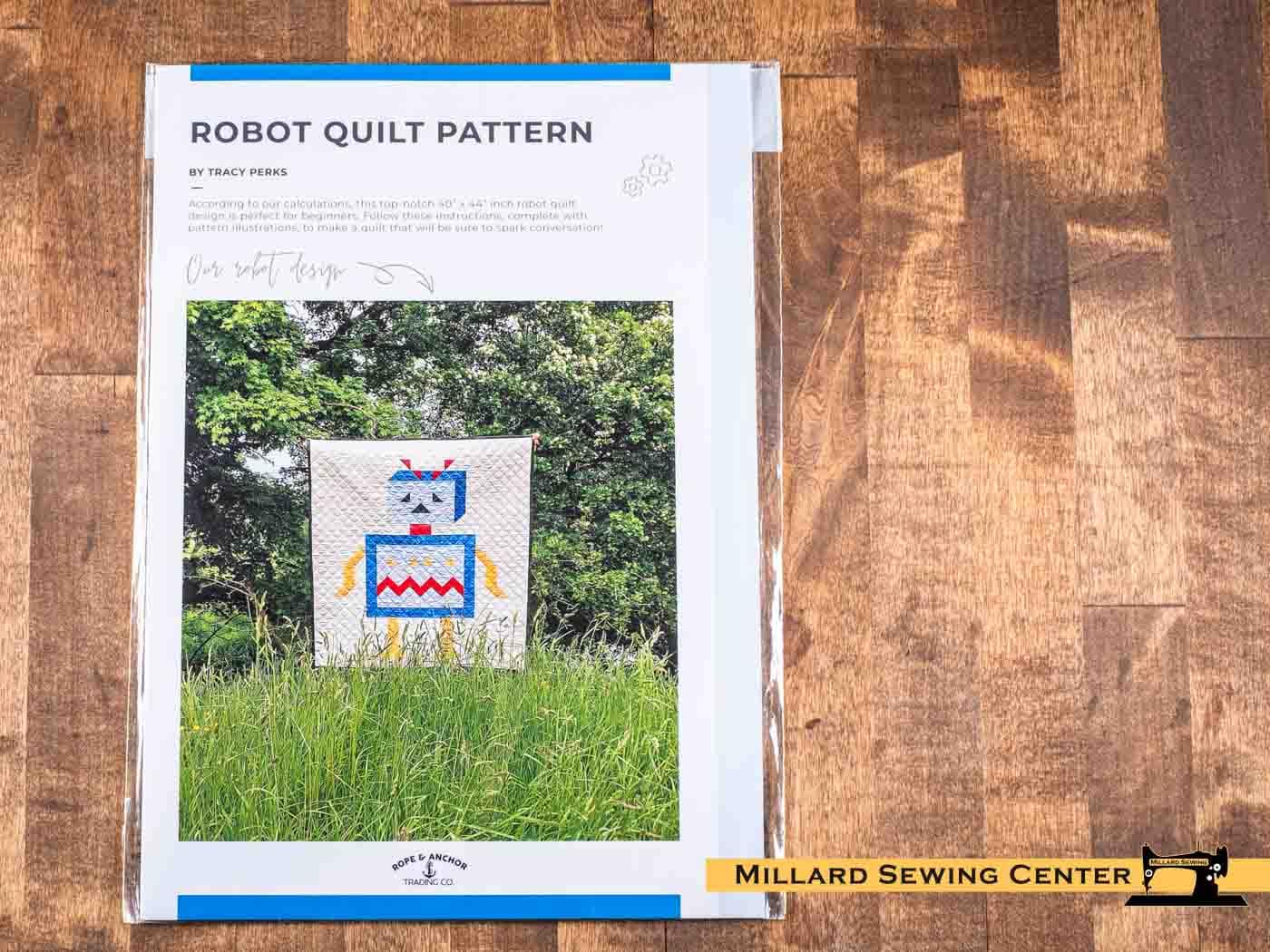 According to our calculations, this top-notch 40in x 44in inch robot quilt design is perfect for beginners. Follow these instructions, complete with pattern illustrations, to make a quilt that will be sure to spark conversation! Pattern designed by Tracey Perks.