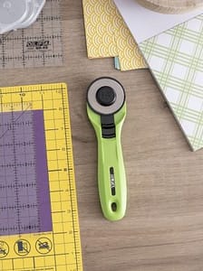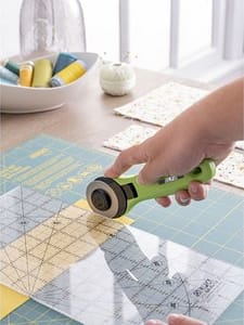 This Rotary Cutter uses OLFA 45mm replacement blades, which cut up to 8 layers of cotton fabric.