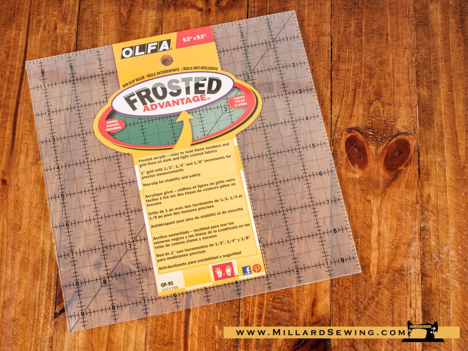 Just the right size to be the perfect quilting ruler, the OLFA QR-9S 9 1/2″ Square Frosted Acrylic Ruler makes cutting out medium to large craft pieces easy. Frosted Advantage acrylic rulers offer the precision and control you need in a craft ruler, including easy-to-read markings and a stable non-slip backing. Designed for accuracy and precision with grid lines marked in 1/8″, 1/4″, 1/2″ and 1″ increments.
