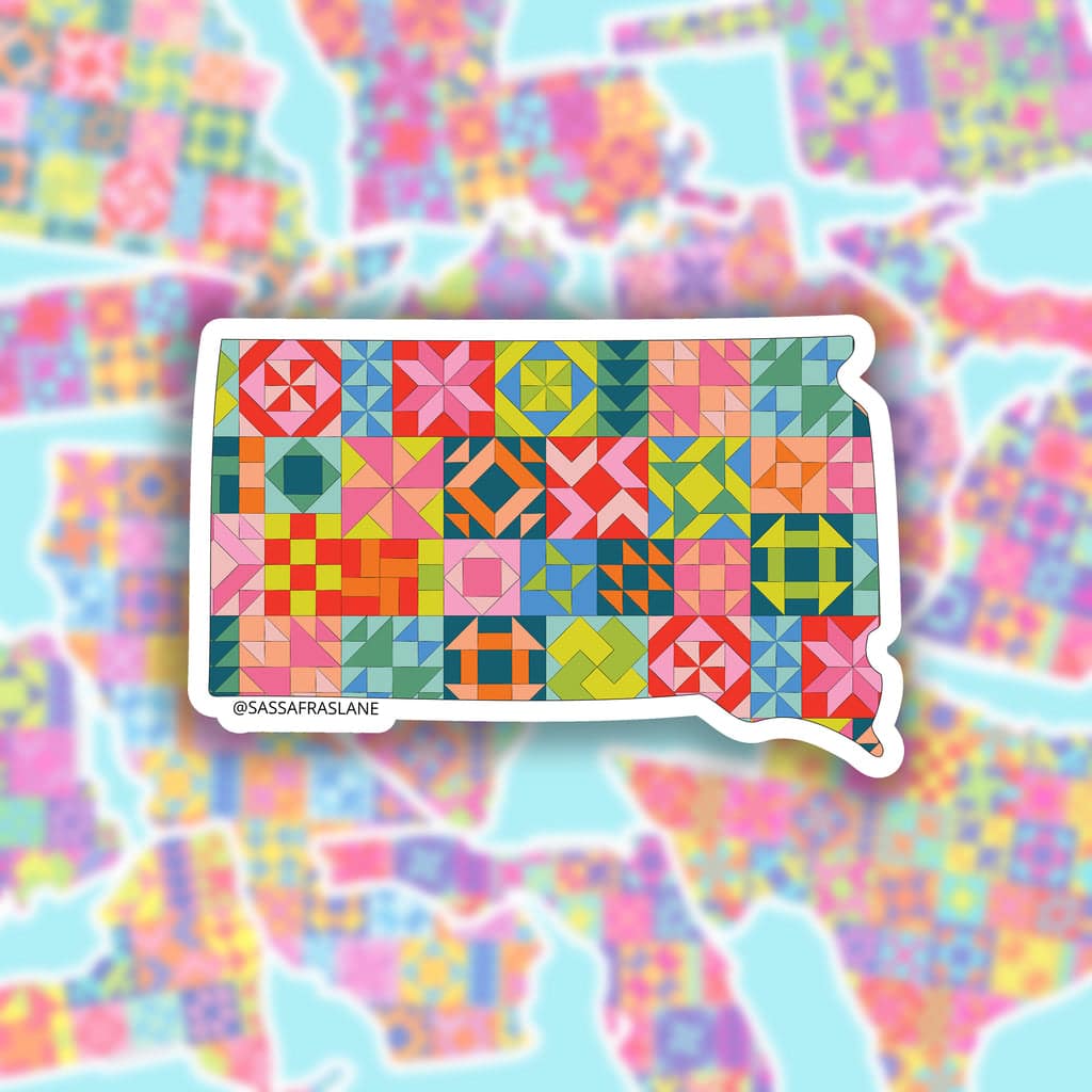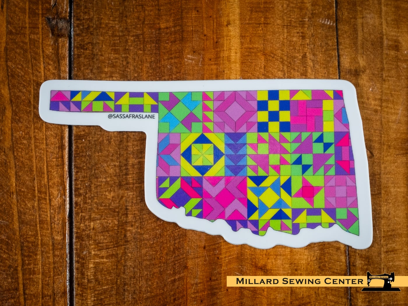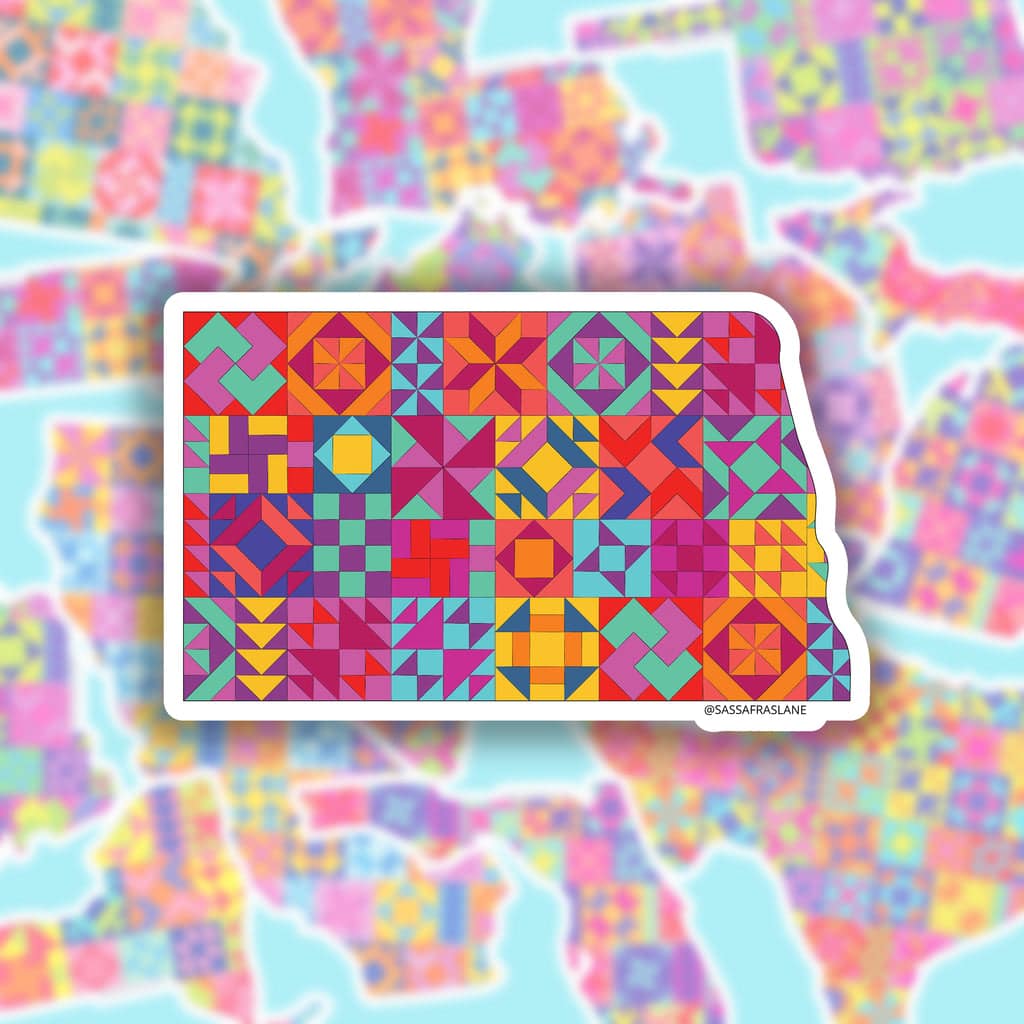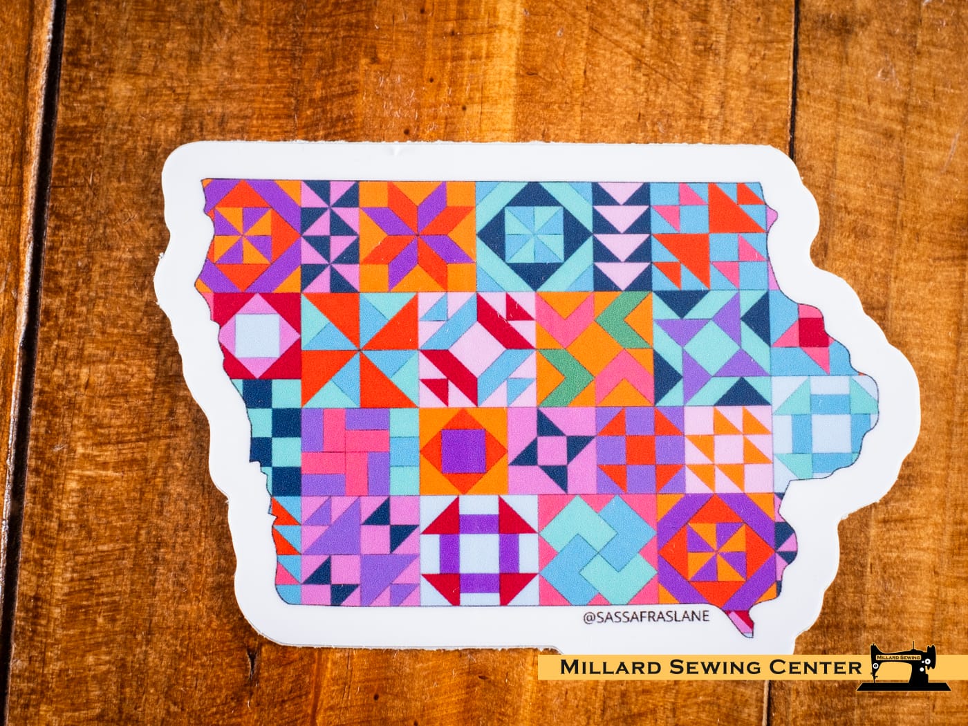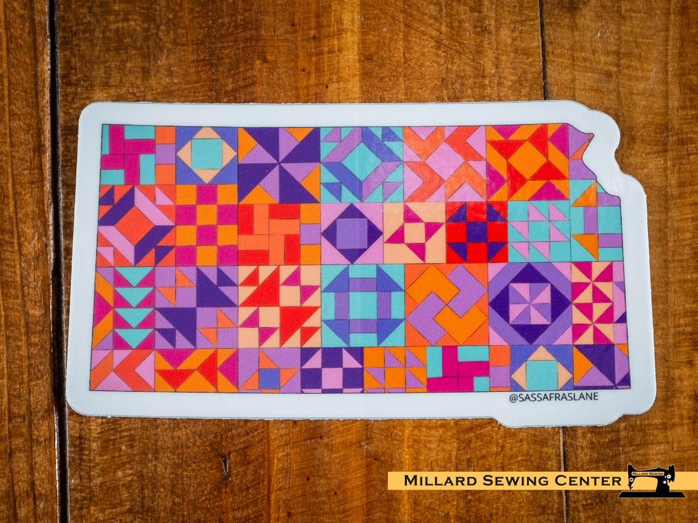 The Quilt States Stickers feature your favorite state shape filled with traditional and colorful quilt blocks! All our die cut stickers are made of a thick durable vinyl with a protective laminate coating.