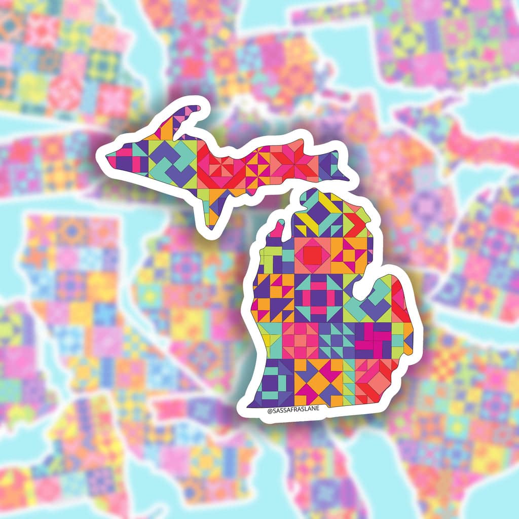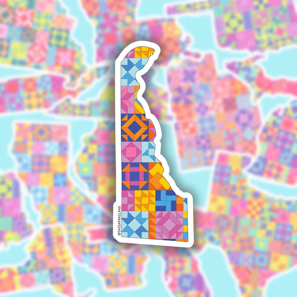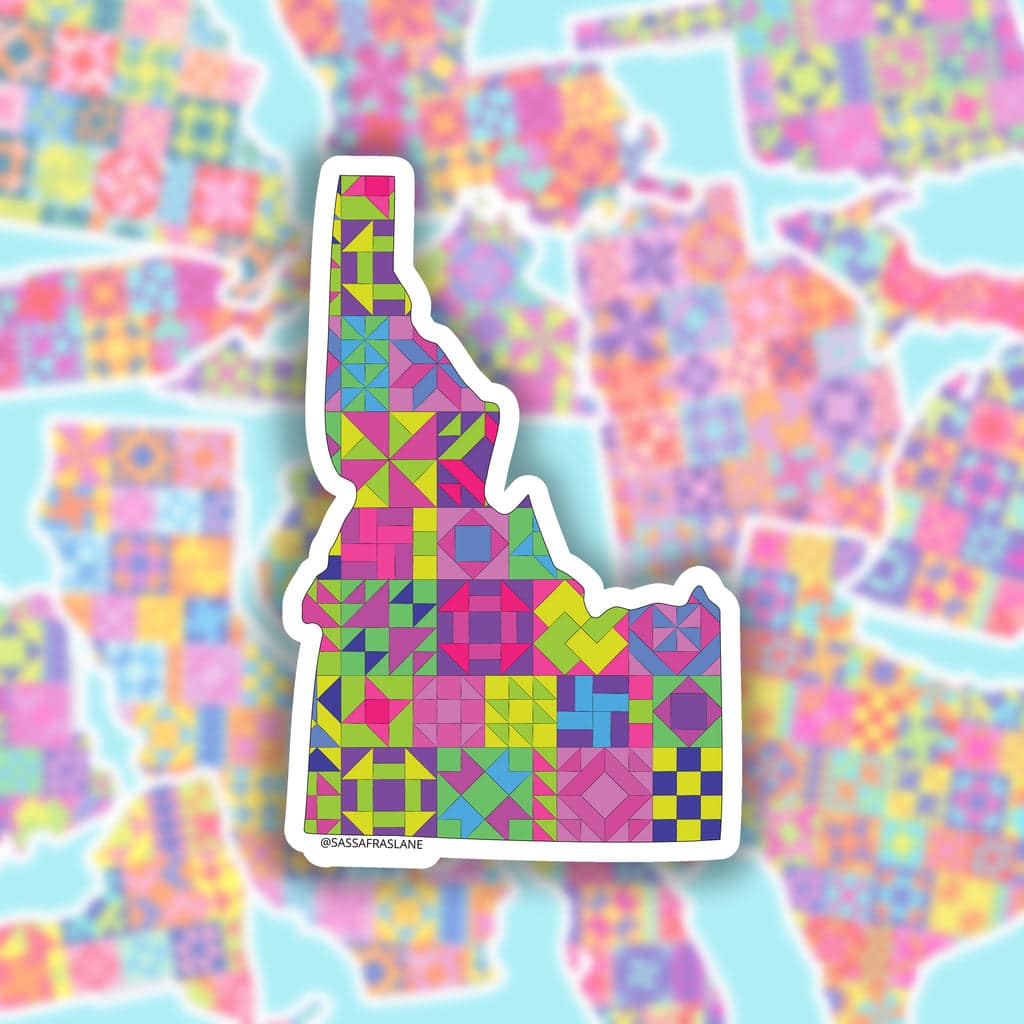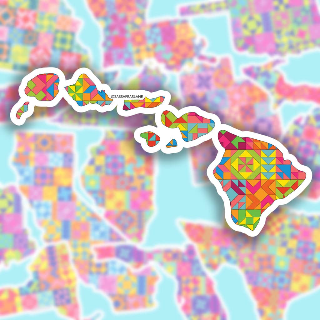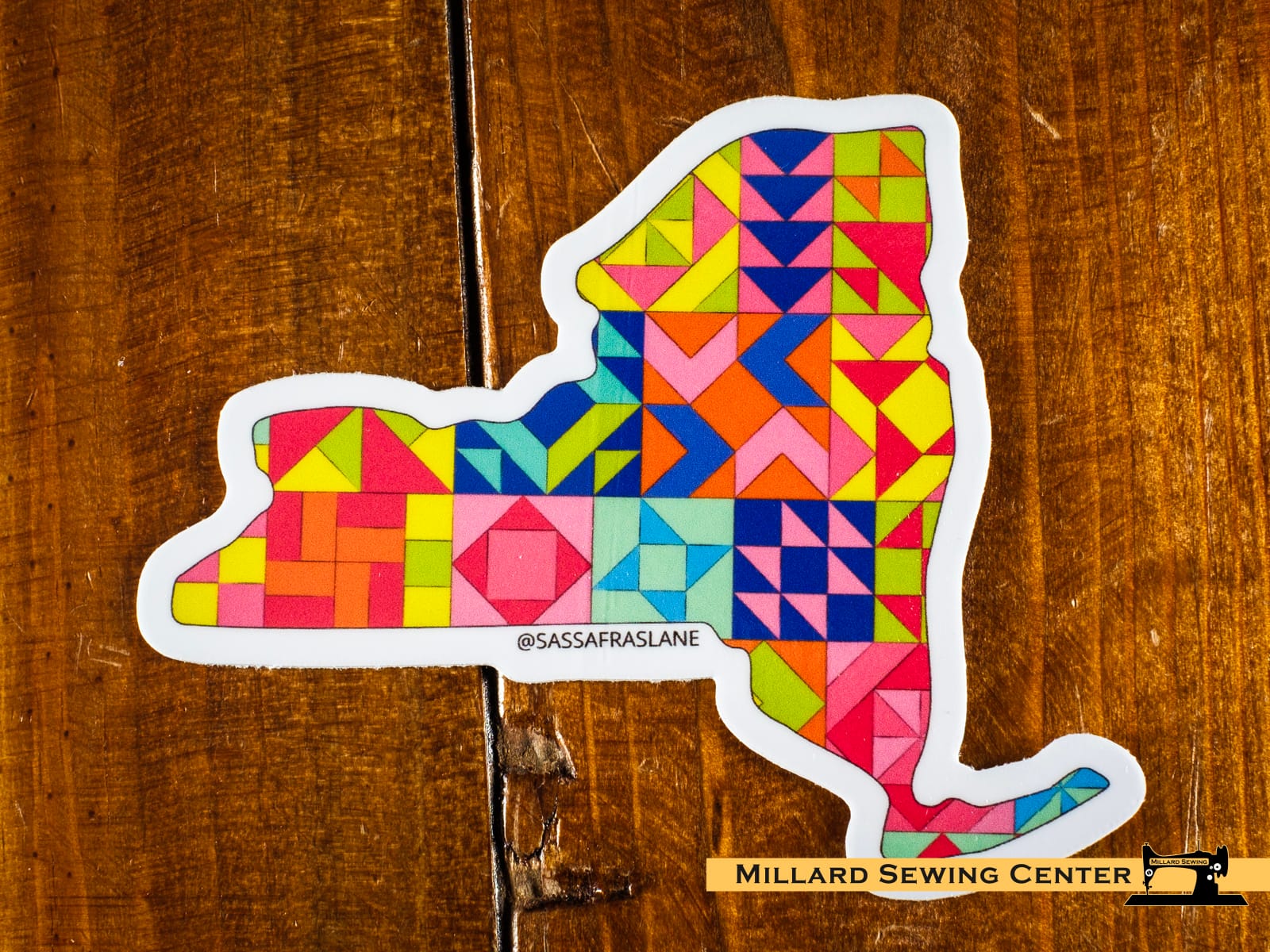 The Quilt States Stickers feature your favorite state shape filled with traditional and colorful quilt blocks! All our die cut stickers are made of a thick durable vinyl with a protective laminate coating.