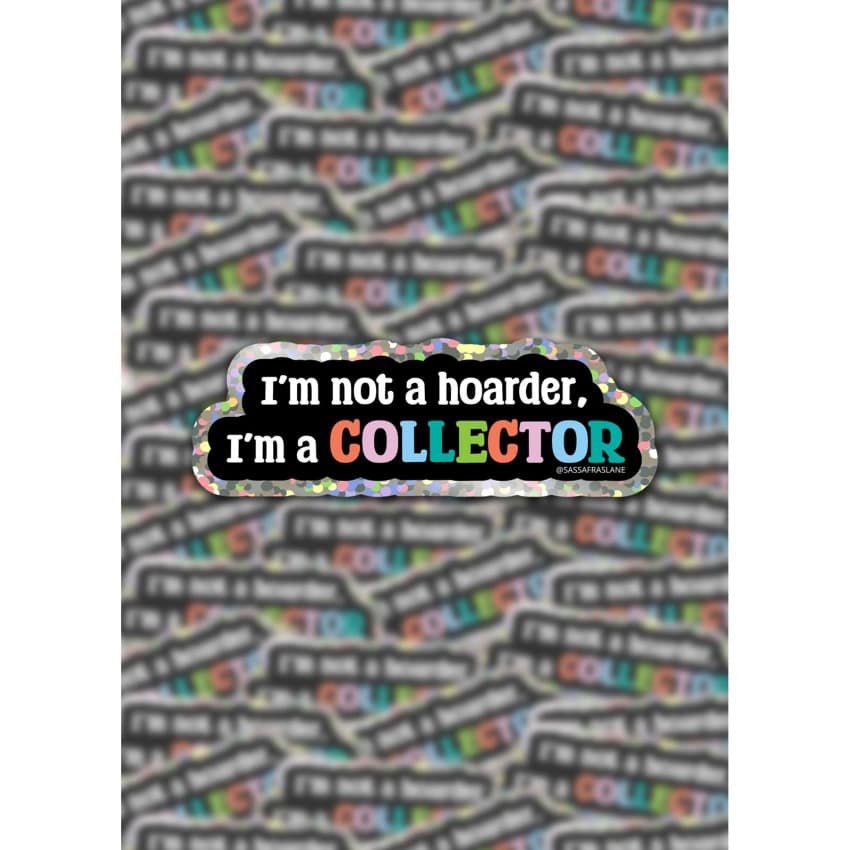 The Not A Hoarder Sticker is an illustration of the phrase “I’m not a Hoarder, I’m a Collector,” inspired by every maker’s collection of goodies! Sticker features a glitter border. All our die cut stickers are made of a thick durable vinyl with a protective laminate coating.