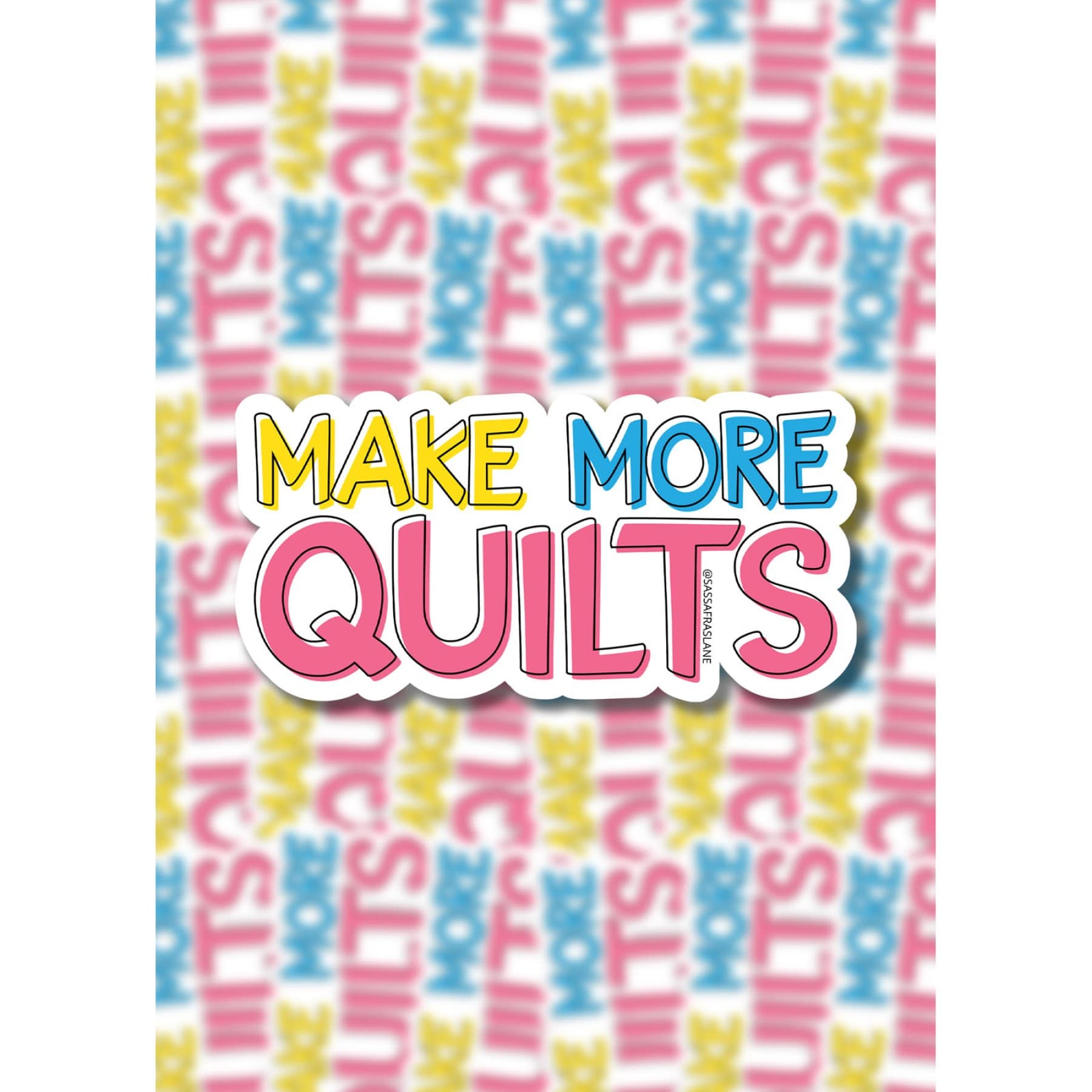 The Make More Quilts Sticker is a doodle of the phrase “Make More Quilts,” inspired by a quilter’s constant goal – to make all the quilts! All our die cut stickers are made of a thick durable vinyl with a protective laminate coating.