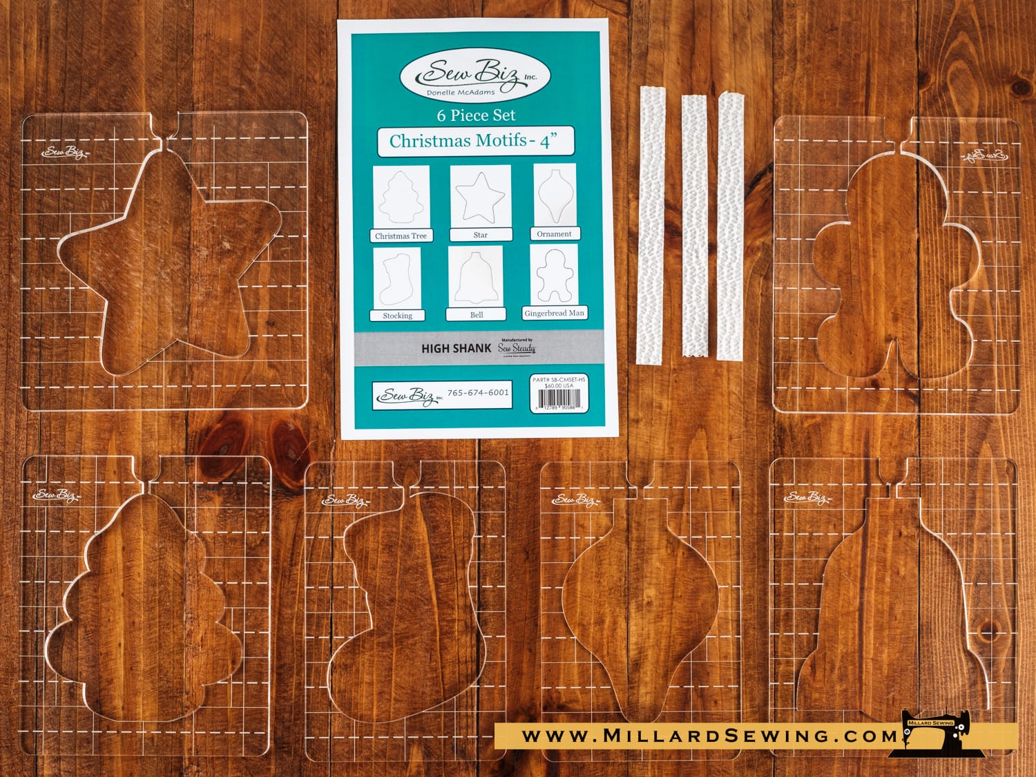 The Christmas Motif Templates are very versatile. These templates can be used individually, grouped together to create borders, stitched with any of the pathway types of templates to create background fills and stitched for TempLee quilting designs. Each template features markings for perfect lineups, vertically and horizontally, and include an easy access thread slot.ย This is your complete cookie cutter 4โณ Design set with the Christmas Tree, Star, Ornament, Bell, Stocking, and Gingerbread Man!