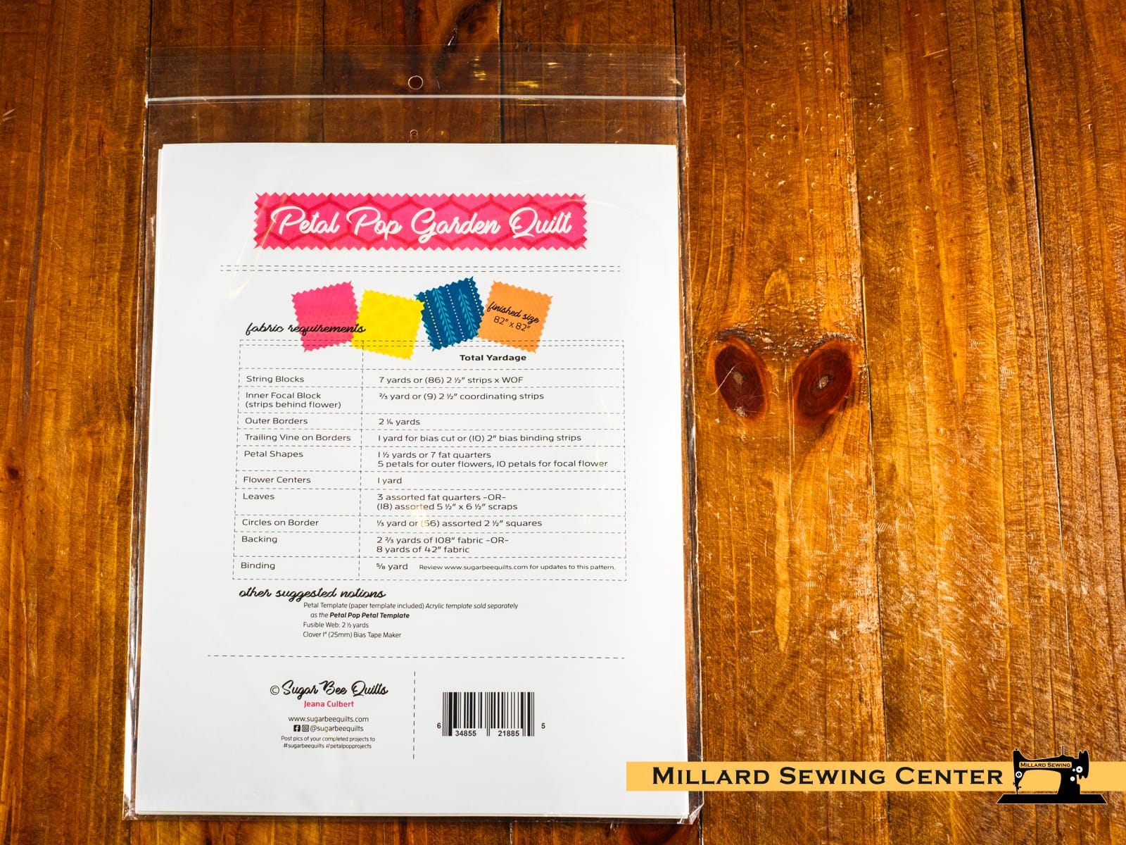 The Petal Pop Garden quilt is a is a pre-cut friendly quilt, featuring the use of 2 ½” strips and fat quarters as well as some yardage. The outer borders provide visual interest and the opportunity for applique. The quilt is designed to draw attention to the center focal flower and the other flowers at the corners and edges of the quilt top. This pattern would be lovely in any type of fabric from small scale florals, large-scale fabrics and even solids. A paper template for the petal shape is included in the pattern The Petal Pop Acrylic Template (SB02) is also available to pair with this and other Petal Pop Patterns. Designed by Jeana Culbert of Sugar Bee Quilts.
