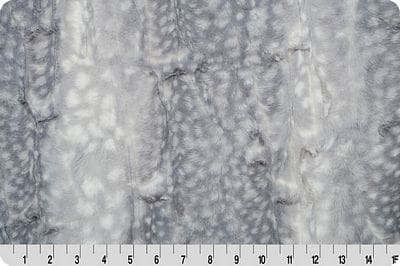This package contains 100% Polyester Minky fabric, pre-cut 2 yard, 58/60 inches wide. Fawn Silver print from Luxe Cuddle Cuts by Shannon Fabrics.