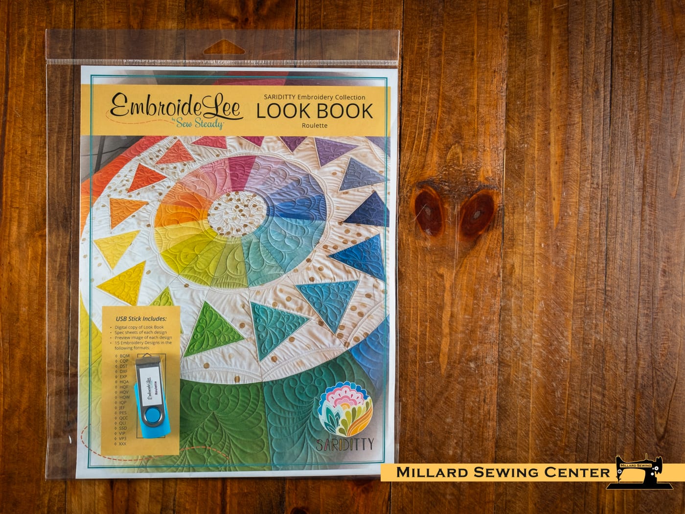 - Designs are sent on a USB with a printed copy of the SARIDITTY EmbroideLee Roulette Embroidery Look Book.