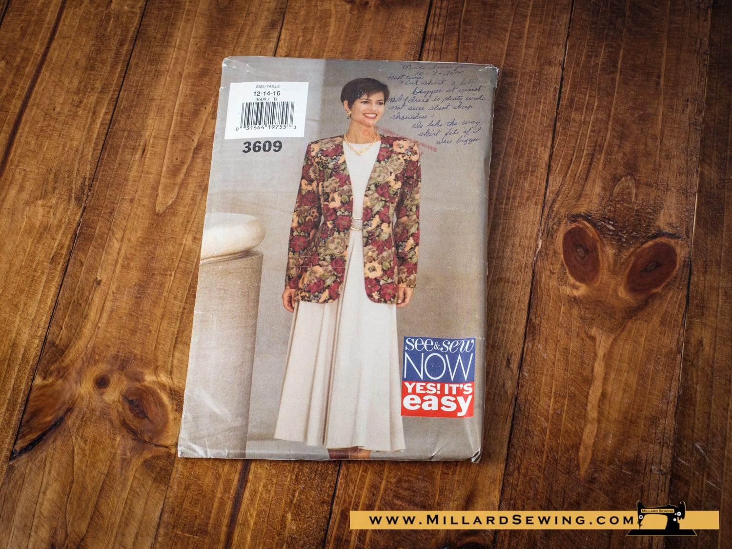 See and Sew 3609 Easy Classic Vintage 1990’s pattern, Misses Jacket and dress, Cut Size 16, Back Zipper, Full skirt.