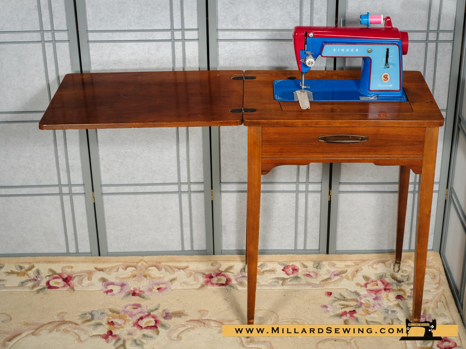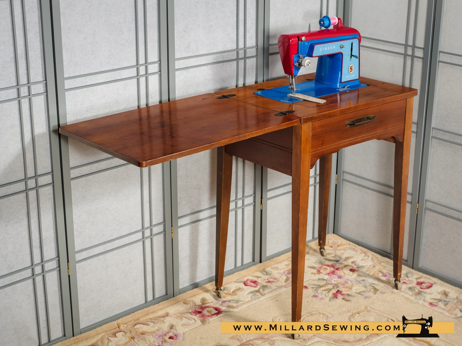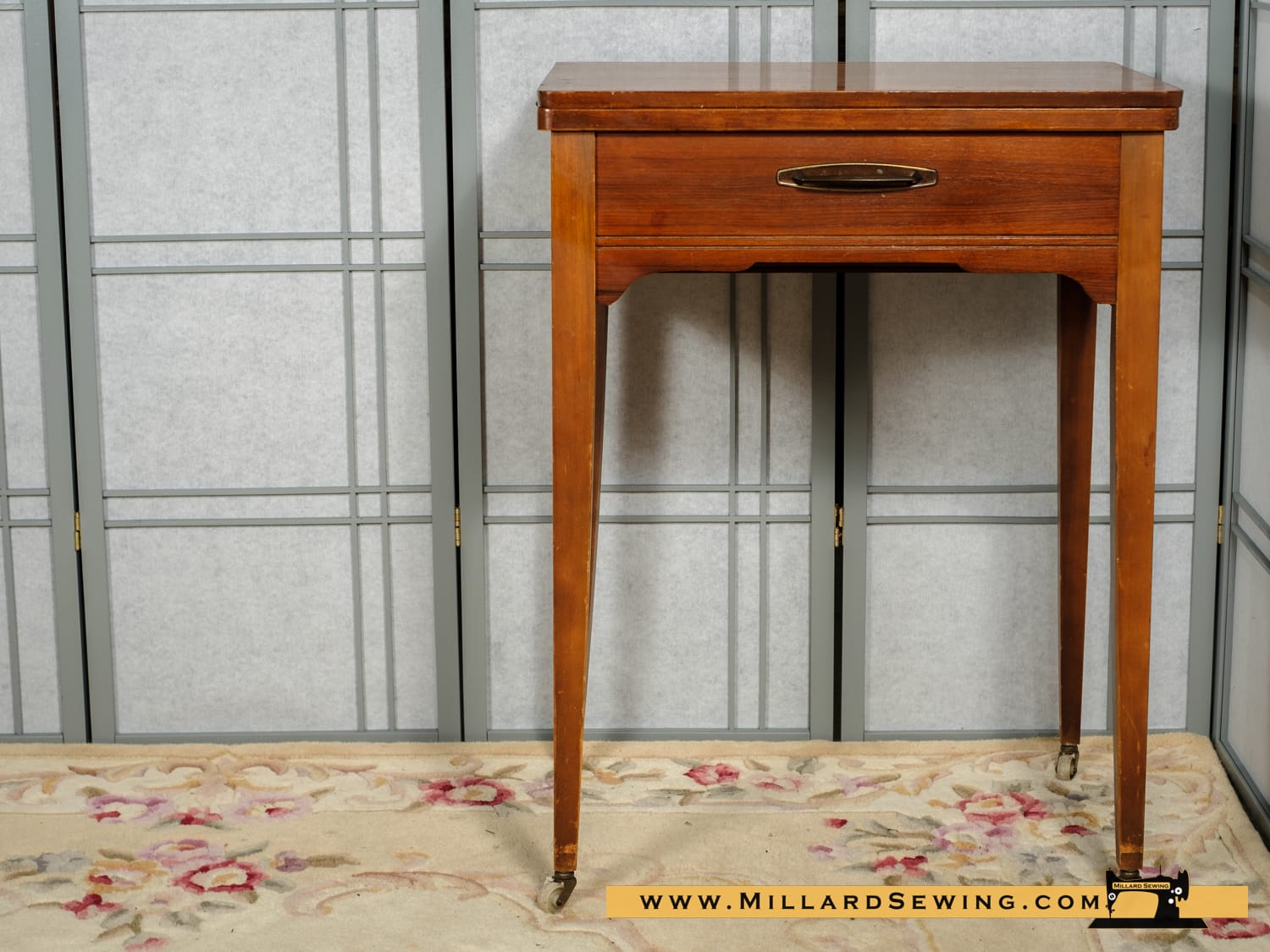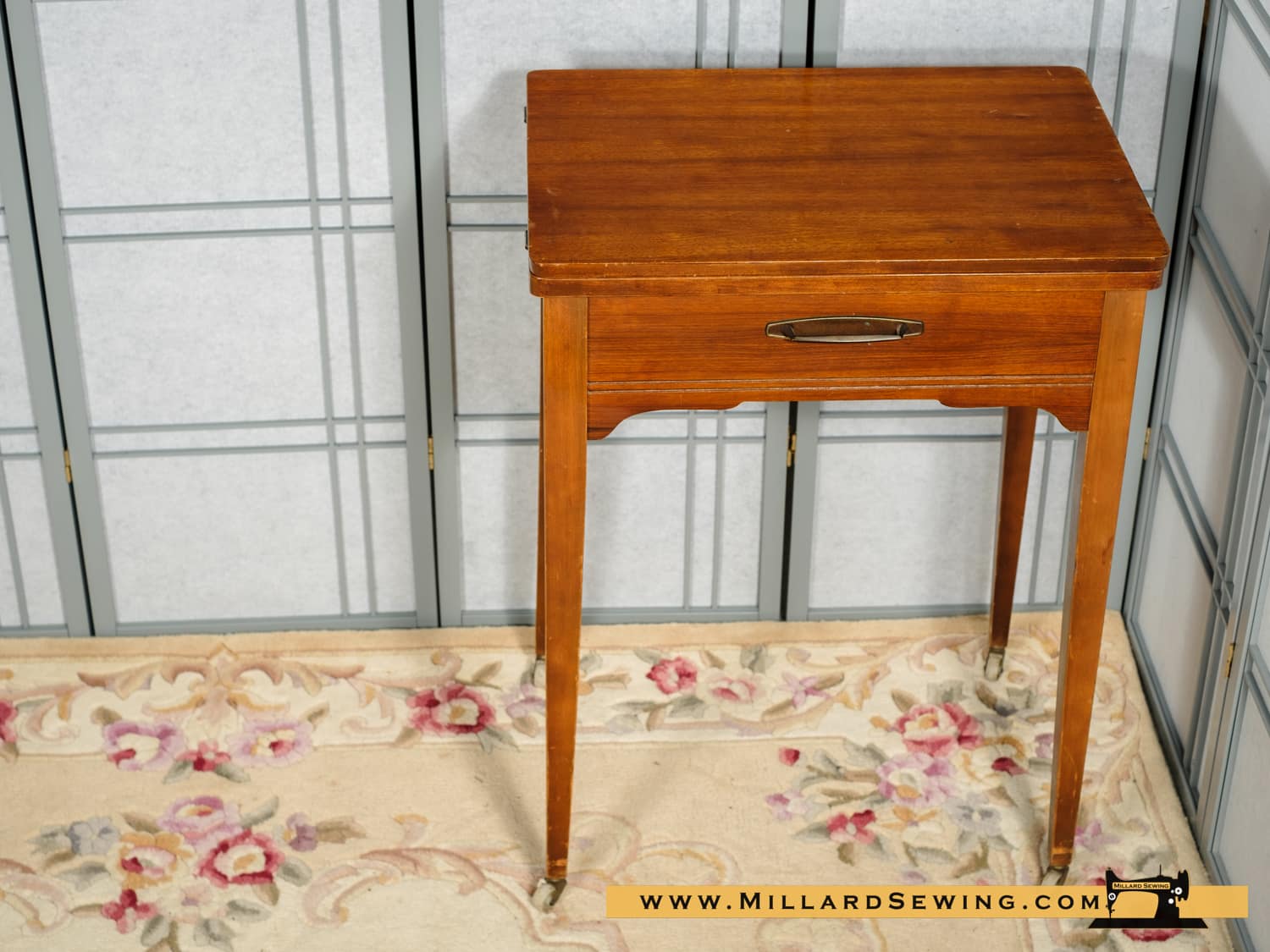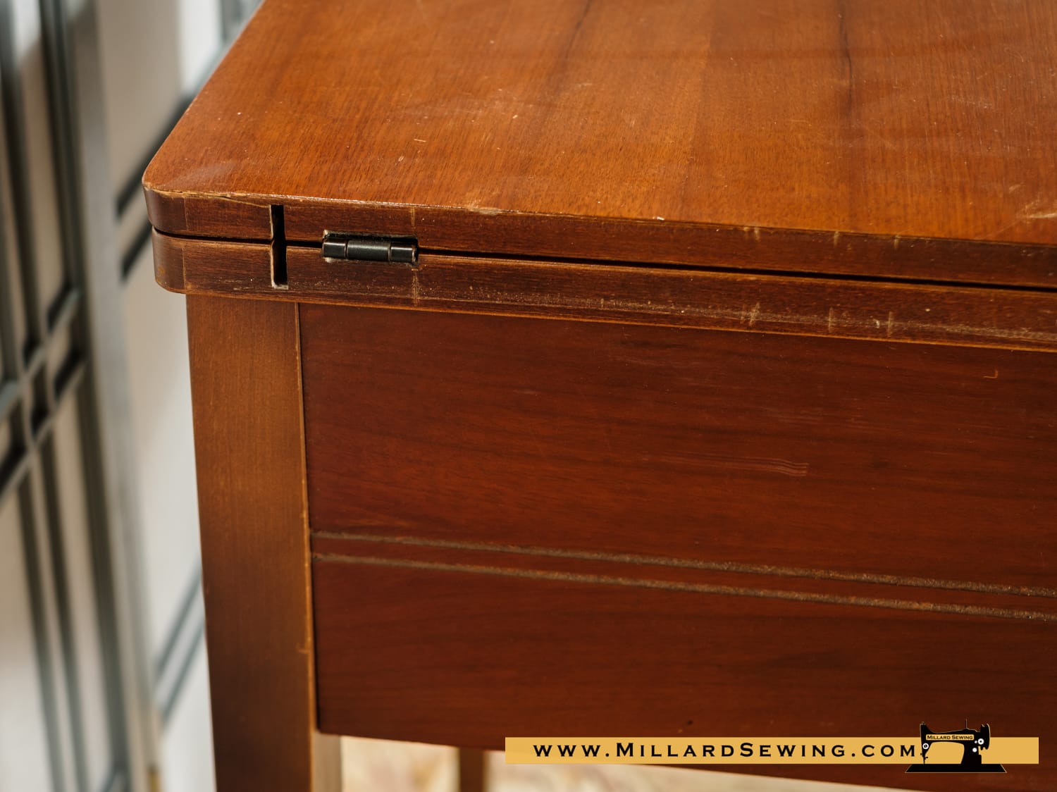 This cabinet comes to us from the age of the Touch & Sew and Stylist model Singer Machines. It will also fit the older machines equally well when paired with a cabinet lift bracket 124450 or similar. If you are looking for a cabinet that is simple in design and in great shape this might be the one for you!