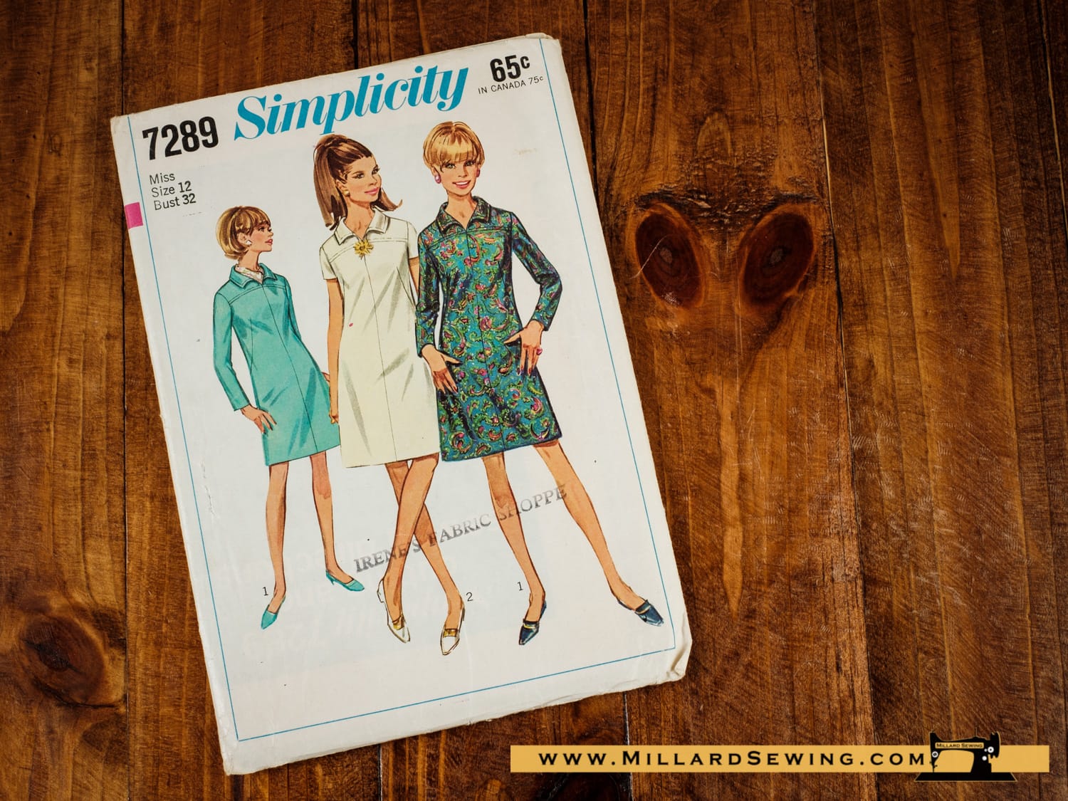 Juniors’ and misses’ size 12 A-line dress with front yoke has set-in sleeves, back zipper, bias collar and top-stitched trim. Choose long or short sleeves.