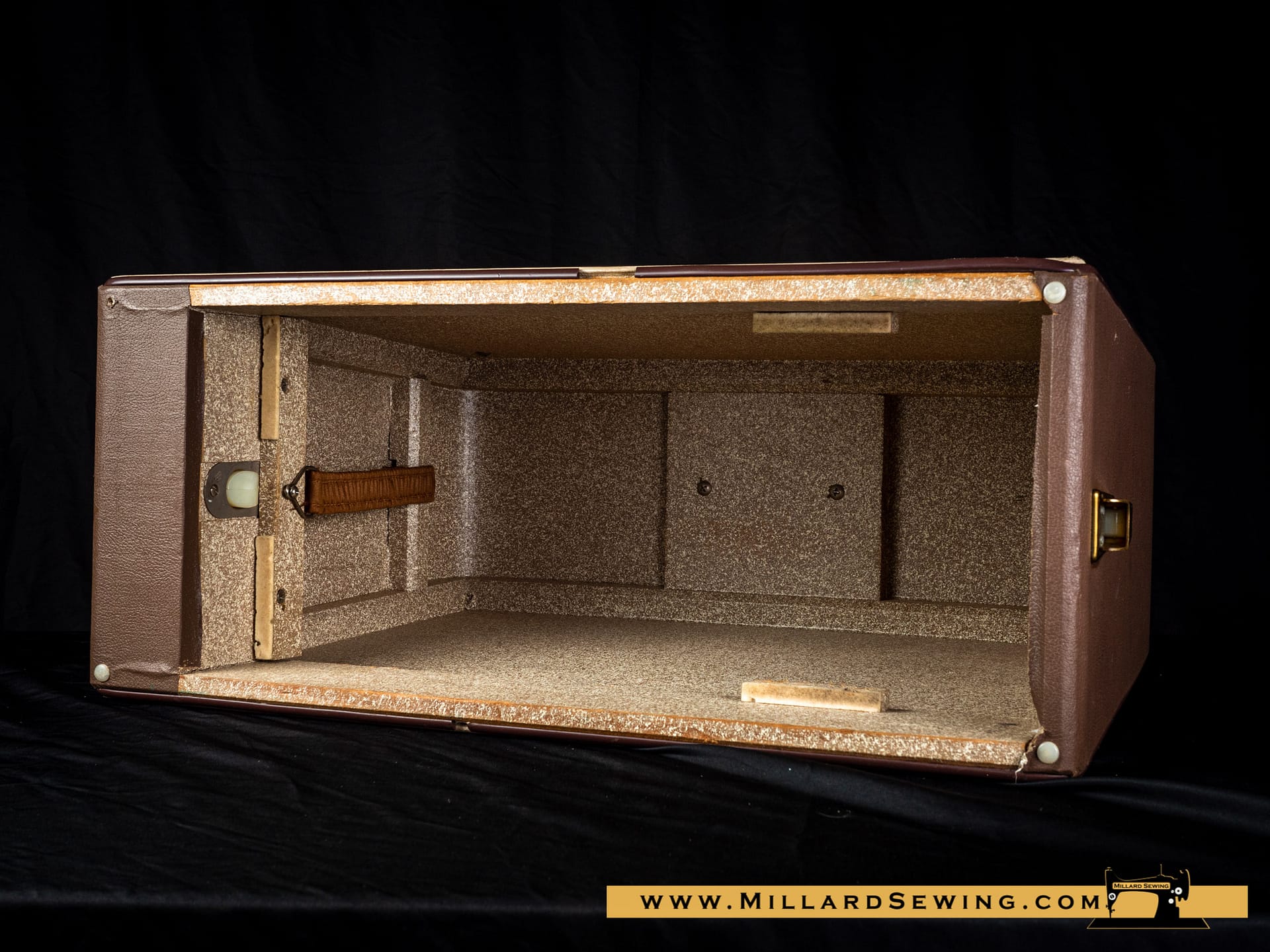 This is an original carrying case for an early 1960’s Singer sewing machine. Would work for the 400 & 500 series machines.