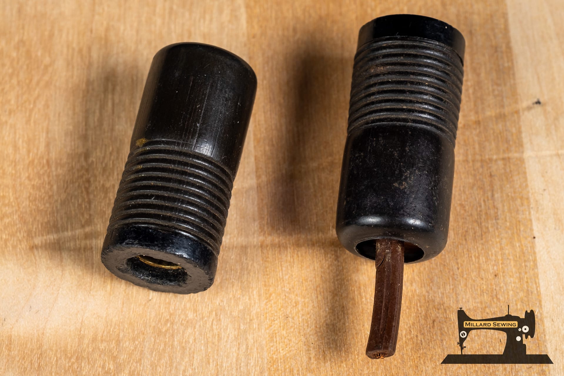 Original Singer brand electrical plug pair.ย These are an original antique part that has not been restored.