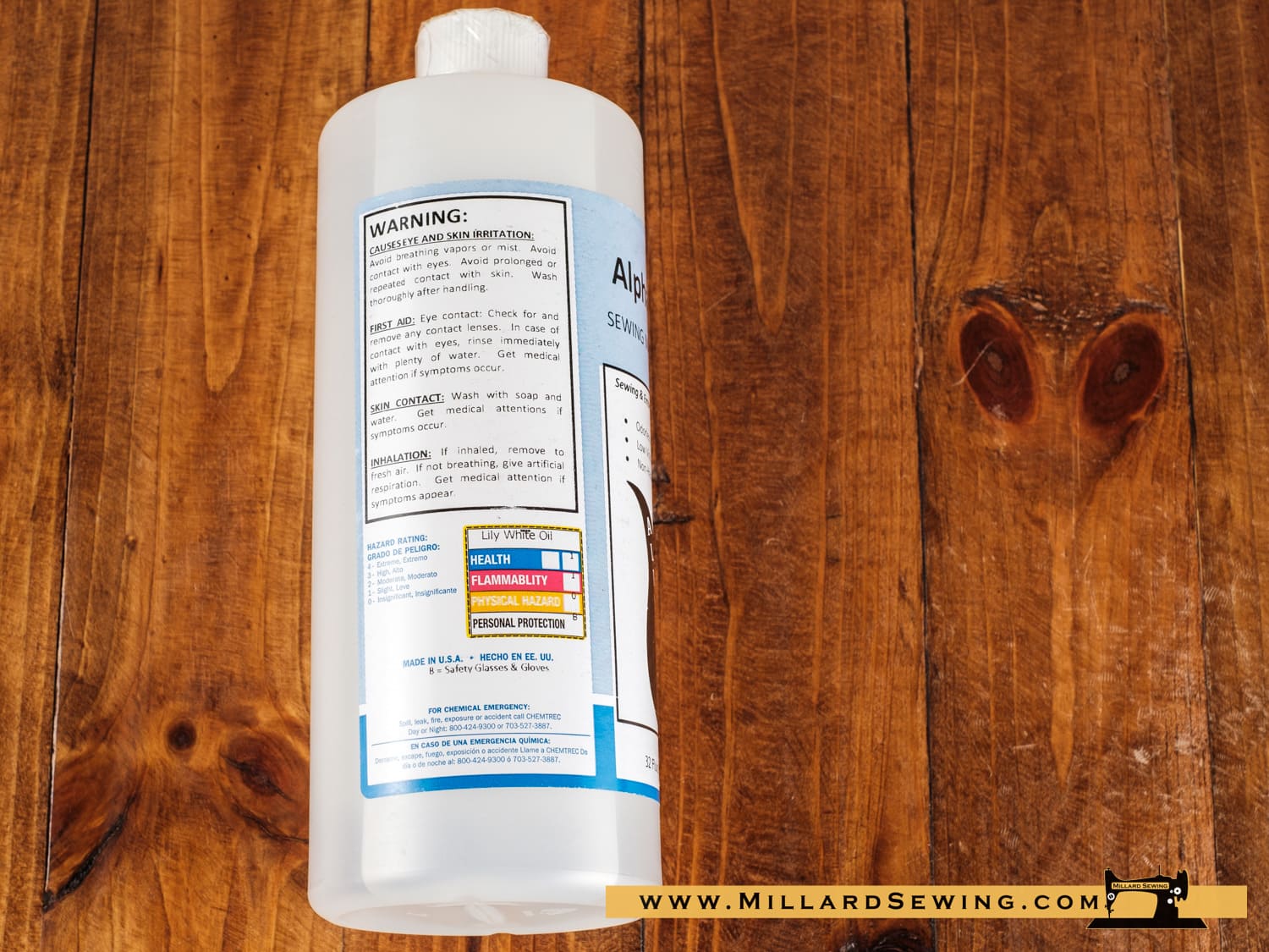 Lily White is a highly refined sewing machine oil, for high speed industrial sewing machines, and also good for the home sewing machine use. Made in USA – low viscosity, water white lubricating oil for weeing machines, textile machinery and parts. Excellent for use in application where oil may come into contact with fabrics. Contains: formulated mineral oil.
