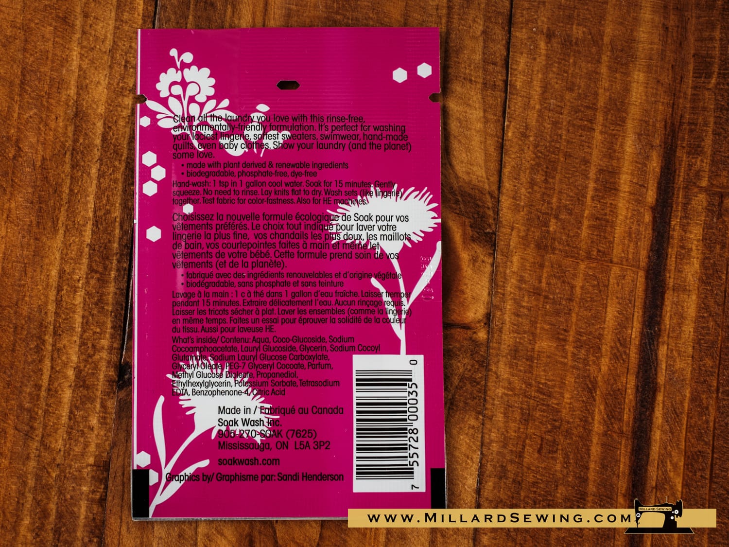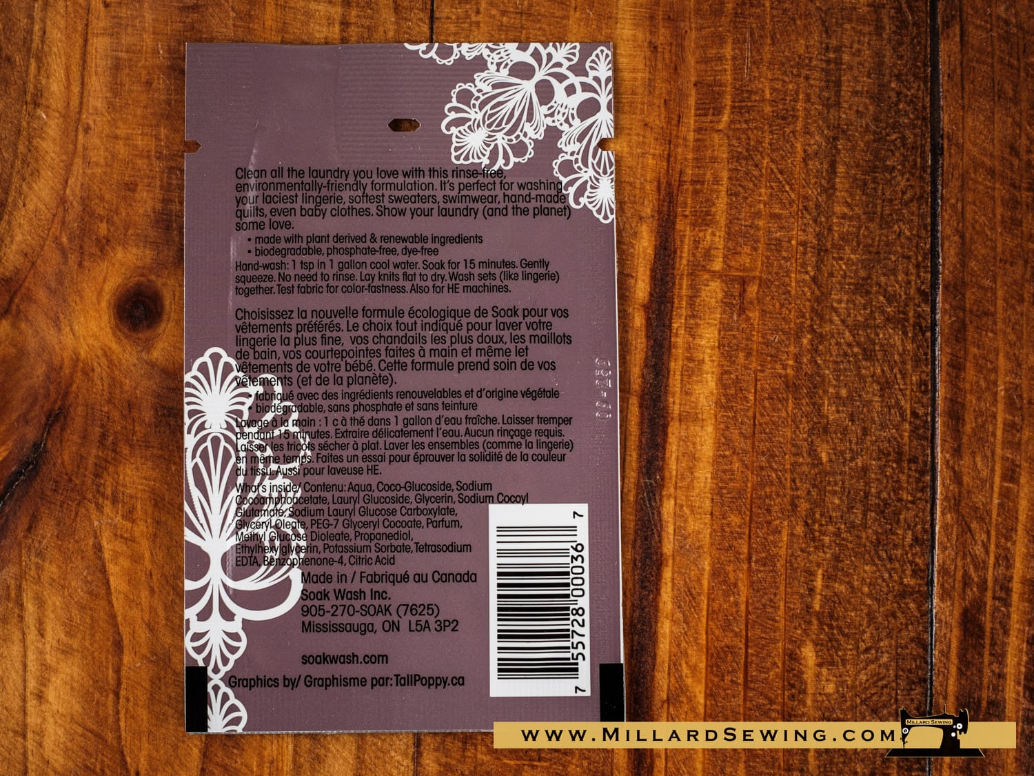 Soak is a pure, gentle and deliciously scented way to wash the delicate items you care about most. Perfect for knitters, quilters and fashionistas alike. The gentle no-rinse formulation makes and keeps you clothes and crafts soft and looking their best.
