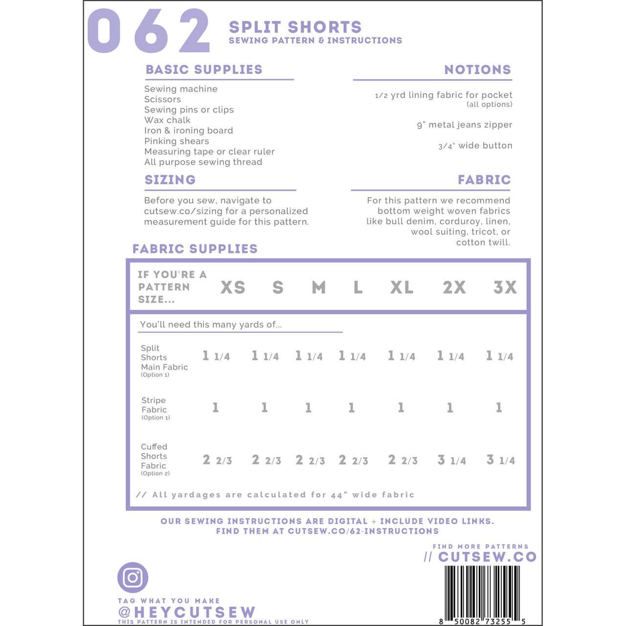 Inspired by street fashion in 90’s anime, this pattern includes two fully customizable shorts styles: a split version with princess seam panels so you can mix and match fabrics, or a cuffed version with a simpler silhouette and rolled up cuffs. Both options include full-sized side seam pockets pockets, a zipper and button front fly, back pockets, and a split waistband so you can combine fabrics and colors. Both styles are slightly longer and higher waisted than contemporary shorts, meant for a retro unisex fit.