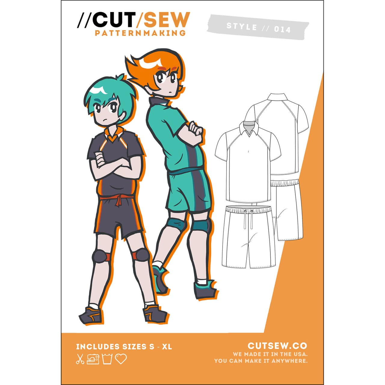 Show your school spirit! This super comfy cosplay pattern reps everyone’s favorite shonen genre – sports anime. Make your own cosplay using this pattern’s baggy gym shorts, featuring a drawstring elastic waistband and side seam racing stripes, plus a pullover polo-style shirt also featuring contrasting stripes.