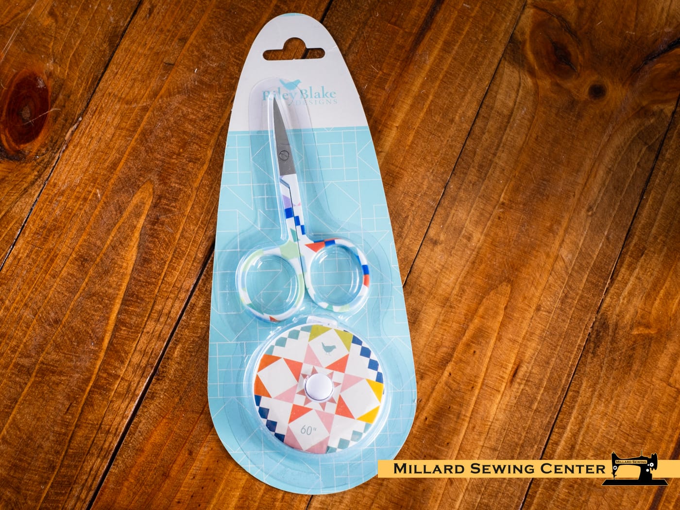 The Riley Blake Designs Scissor and Tape Measure Duo includes embroidery scissors and matching tape measure with a cute, patchwork quilt design. The scissors are 3 1/4″ and the tape measures to 60 inches.