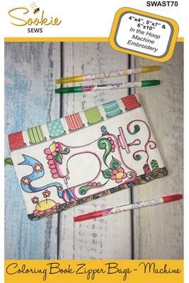 Coloring is both a relaxing and creative hobby. No matter the age, everyone can color and most importantly, feel like an artist. This machine embroidery design is made entirely In The Hoop, ITH. It’s a fast and fun way to express your unique creative side. The bags are constructed entirely in the hoop, including zipper insertion, back pocket, optional strap and it’s fully lined. Only a little hand stitching required. Designs included come in three (3) sizes, requiring an embroidery machine using these size hoops or larger: 4x4in, 5x7in and 6x10in. Bag finished dimensions are: Small 3-3/4×3-3/4in, Medium 7x5in, Large, Formats Include: ART, DST, EXP, HUS, JEF, PES, SHV, VIP, VP3 and XXX