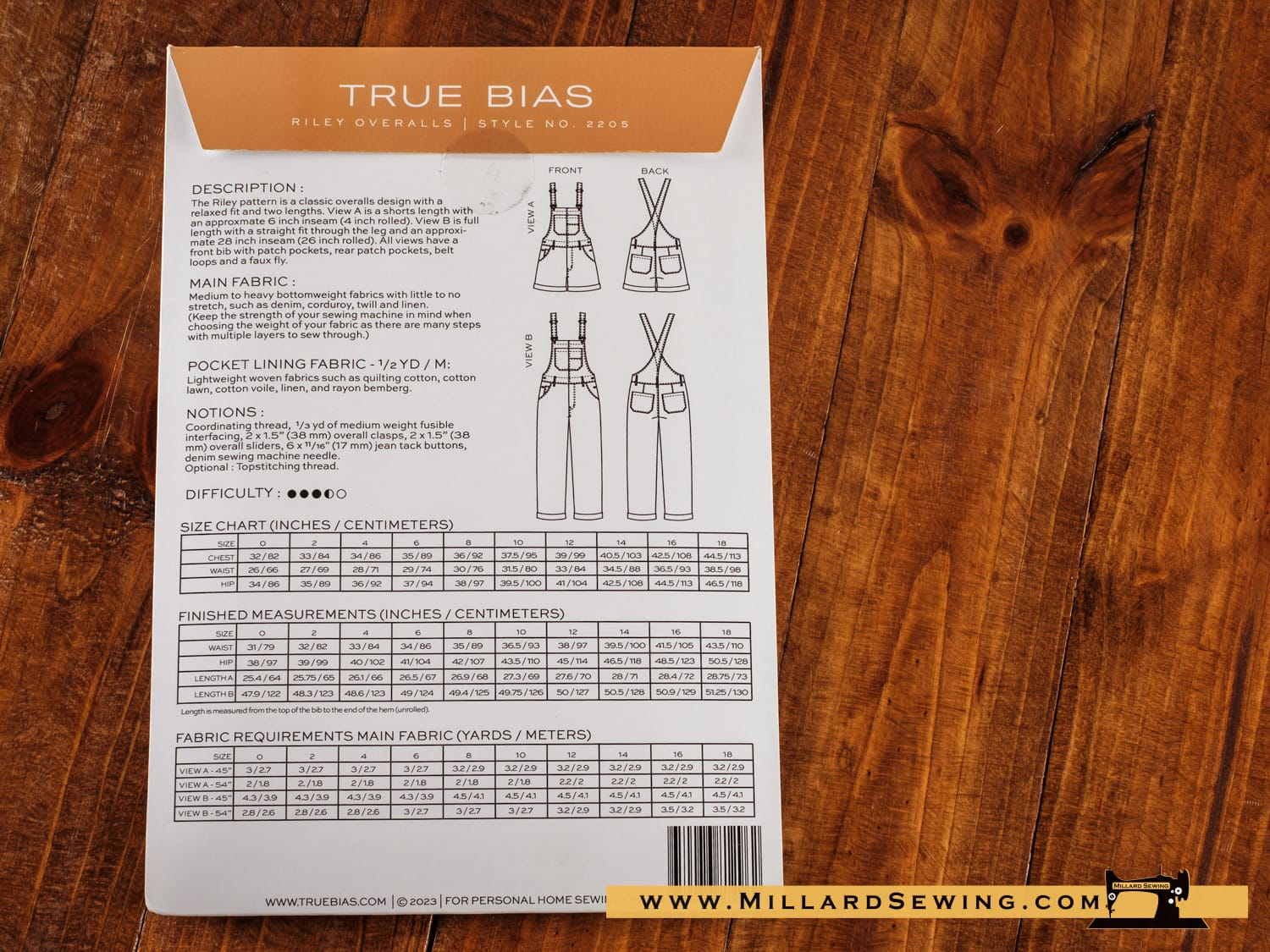 The Riley pattern is a classic overall design with a relaxed fit and two lengths. View A is a shorts length with an approximate 6 inch inseam (4 inch rolled). View B is full length with a straight fit through the leg and an approximate 28 inch inseam (26 inch rolled). All views have a front bib with patch pockets, rear patch pockets, belt loops and a faux fly.