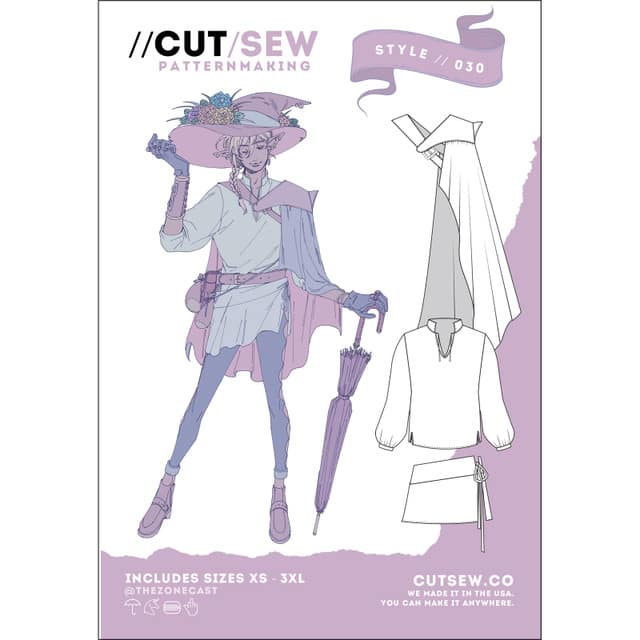 Save your spell slots no more! This cosplay sewing pattern is approved by your Oldest Brother Justin McElroy & features America’s favorite TV wizard, Taako from The Adventure Zone. Included are the pieces for a peasant-style top, a wraparound apron/skirt combo, and a stylish half cape – Umbra Staff not included. Use the pattern to cosplay Taako, or your own character for renaissance fairs.